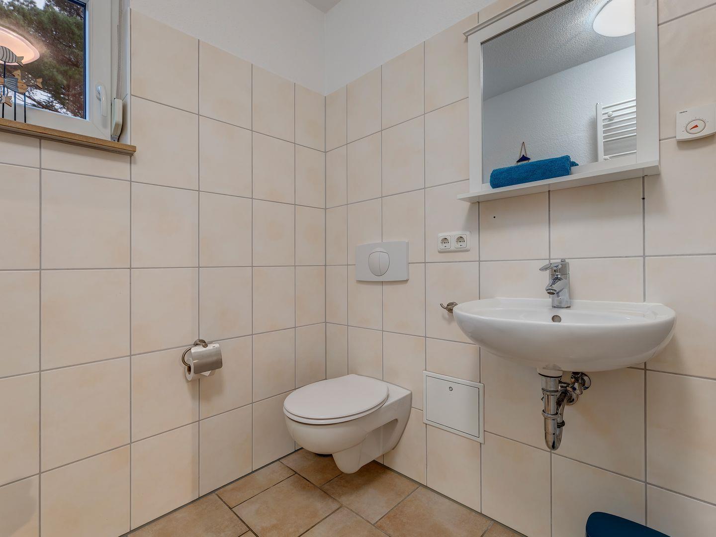 Das separate Schlafzimmer mit Doppelbett und TV sowie das moderne Badezimmer mit ebenerdiger Dusche stehen Ihnen zur Verfügung.