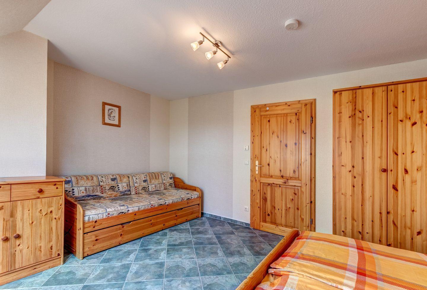 - Zwei Schlafräume: Jeweils mit drei Betten ausgestattet, perfekt für Familien oder kleine Gruppen.