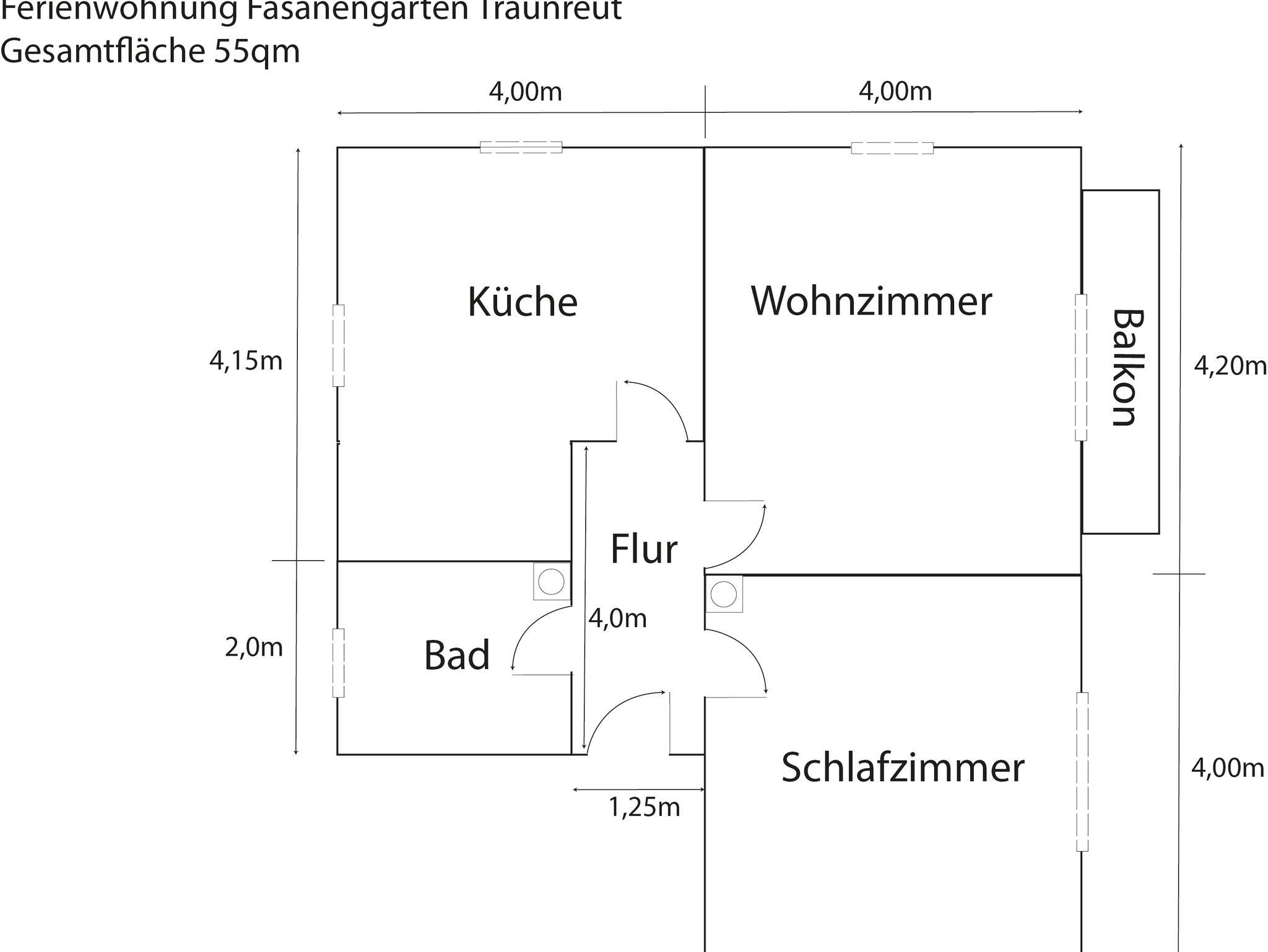 Fasanengarten in Traunreut, Ferienwohnung 55qm mit Balkon und Gartenblick