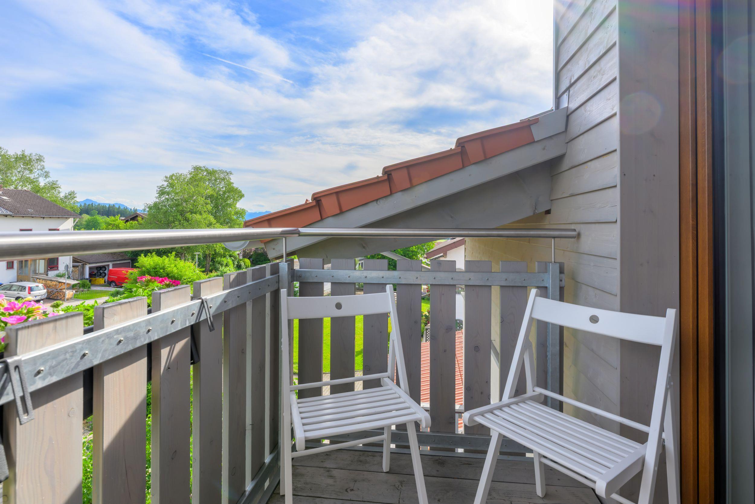 Vacation apartment ChiemgauglückIn Traunstein, "the heart of the Chiemgau" two new vacation apartments are looking forward to you! On the second floor of our house, two completely new accommodations, each with almost 50 square meters of living space, have been created as part of a general renovation. Lovingly furnished, each modern and high-quality equipped apartment offers space for up to four people. In the open living and sleeping area there is a wide double bed and a high-quality sofa bed. Alternatively, both a children's travel bed or an additional extra bed can be provided. However, there are no separate bedrooms. Due to the clever architecture, a connection of both apartments is possible if desired. In the garden there is an outdoor sauna, which can accommodate up to six people. Our Chiemgau is characterized in particular by its versatility as a tourist region. Thereby every season offers the possibility for a stay according to your taste. The spring awakening of nature in spring, the bathing lakes in summer, the hiking experiences in autumn as well as the winter sports possibilities in the cold season ensure, in addition to countless year-round offers for "young and old", to spend your dream vacation "in the heart of the Chiemgau"! The apartments are available both for short stays but also for an extended vacation. Parking spaces are located directly in front of the house. A lockable bicycle storage including battery charging possibility is available. On request, yoga classes are possible directly with us in the "Chiemgauglück" with a trained teacher. The mountain view of the Berchtesgaden as well as the Chiemgau Alps and the Inn Valley is always an experience. The covered terraces and the spacious balcony invite you to linger. Our house is located in the village of Kammer, a district of Traunstein and is only a few minutes drive from Lake Chiemsee and Lake Waginger respectively. The center of Traunstein with many shopping opportunities can be reached by car in about five minutes and the Chiemgau Alps are also only a few minutes drive away. Arrival: between 15:00 - 20:00 or by arrangement | 08:00 - 10:00 or by arrangement