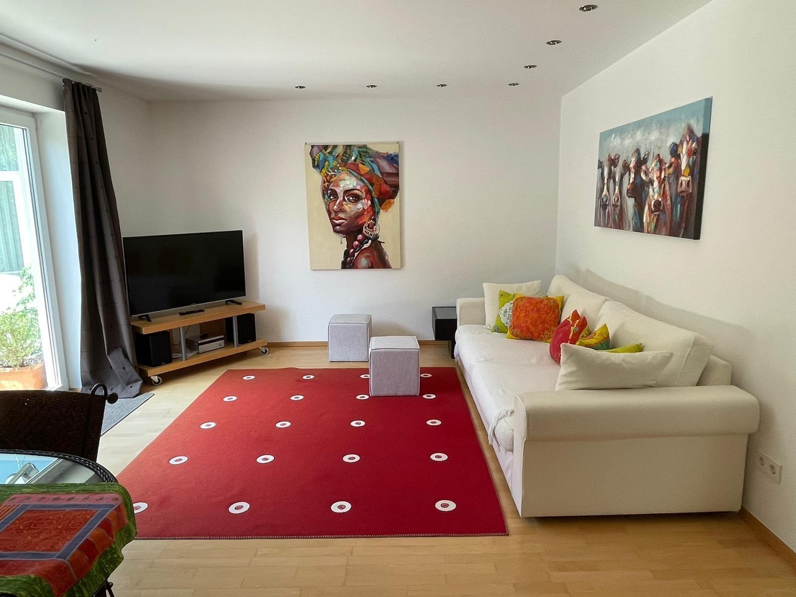 Das liebevoll eingerichtete Appartement besteht aus einem großen Wohnzimmer mit Sofa und Esstisch. Flachbildschirm mit SAT-TV und Stereoanlage.