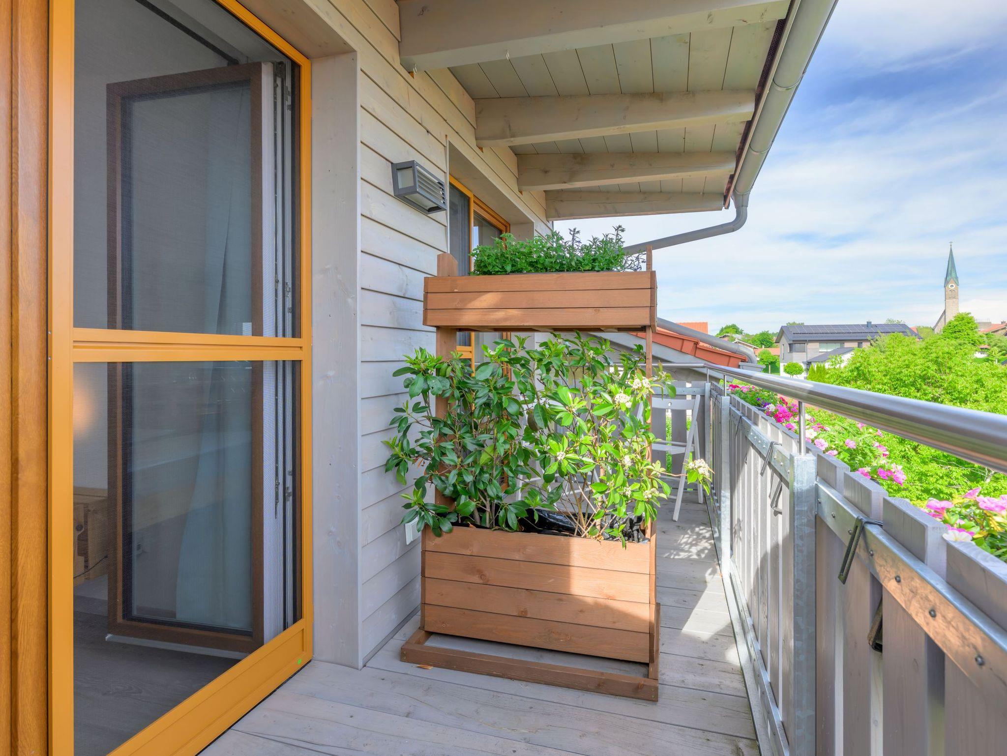 Der überdachte Südbalkon mit einer kleinen Sitzgruppe ist ein idealer Platz zum Seele baumeln lassen. Beim Bau im vergangenen Jahr haben bewusst auf die Auswahl natürlicher Baustoffe geachtet. Das nagelneue und in Holzständerbauweise errichtete Dach ist deutlich über den aktuellen Standards isoliert und bietet insbesondere im Sommer optionalen Schutz bei heißen Temperaturen. Bei der Errichtung haben wir nicht nur die aktuellen Belange des Brandschutzes berücksichtigt, vielmehr haben wir einen hohen Wert auf einen guten Schallschutz gelegt, damit Sie ungestört Ihre Ferien verbringen können.