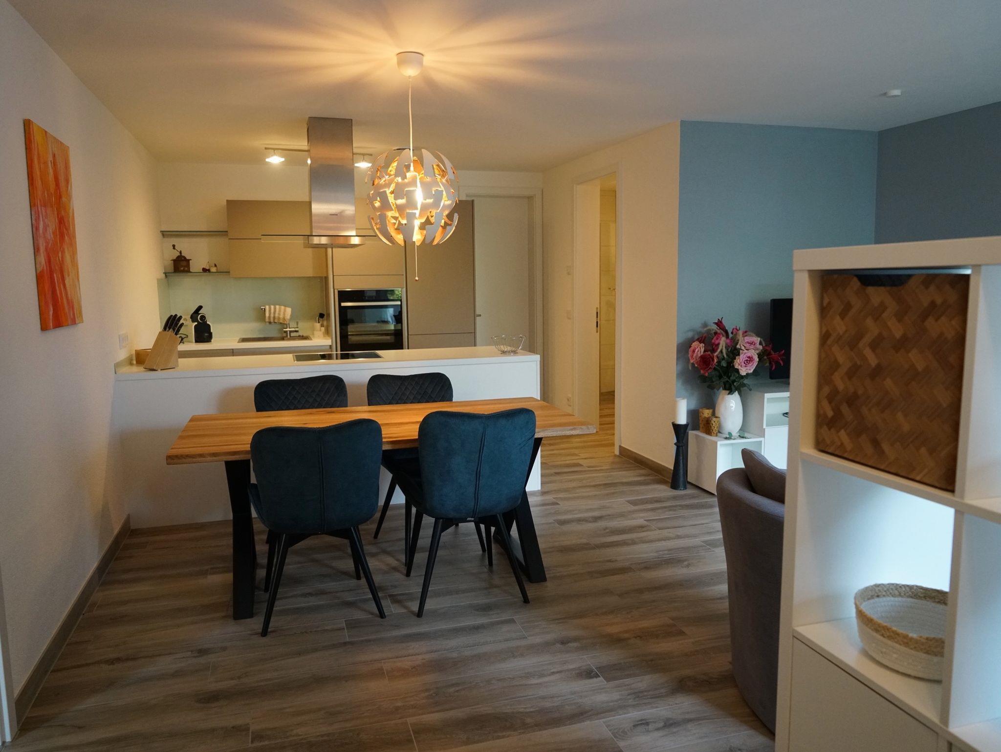 Modern und geschmackvoll eingerichtete Ferienwohnung in zentraler, ruhiger Lage im Traunsteiner Vorort Wolkersdorf. Die helle, einladende Zweizimmerwohnung mit offener Wohnküche und hellem Wohnbereich liegt im Untergeschoss eines modernen Einfamilienhauses. In der Küche finden Sie eine Spülmaschine, großzügigen Kühl- und Gefrierschrank sowie einen Induktionsherd vor. Die Wohnung bietet zudem selbstverständlich kostenfreies Internet sowie TV. Im Sommer genießen Sie ungestört die Abendsonne auf der Terrasse. Der separate Eingang ist über eine Außentreppe erreichbar. Ihr Auto parkt auf dem zur Wohnung gehörigen Stellplatz. Ideal geeignet ist die Ferienwohnung für ein Paar, auf der 2m breiten Schlafcouch im Wohnbereich finden aber bei Bedarf zwei weitere Personen Platz. Haustiere sind in der Unterkunft erlaubt (bis zu 2), diese werden jedoch zusätzlich berechnet.