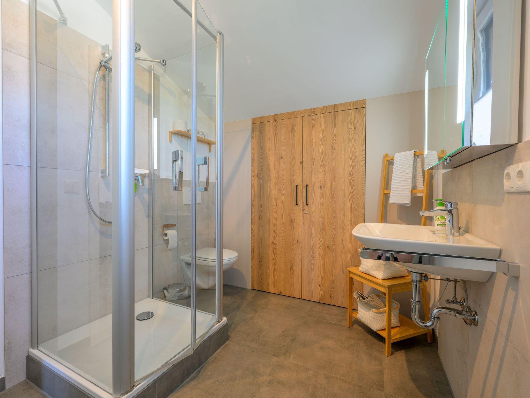 Die Wohnung haben wir mit einem leistungsstarken WLAN versehen. Der moderne, große, schwenkbare und internetfähige Flachbildfernseher sorgt bei gemütlichen Fernsehabenden für die richtige Bild- und Tonqualität. Darüber hinaus steht unseren Gästen ein Digitalradio mit zahlreichen Verknüpfungsmöglichkeiten für Datenträger zur Verfügung. Das Bad in dieser Wohnung zeichnet sich durch moderne Eleganz aus und ist mit Dusche, Handtuchtrockner, WC, Fön und Waschbecken ausgestattet. Eine Waschmaschine steht im Keller unseres Hauses zur Verfügung.