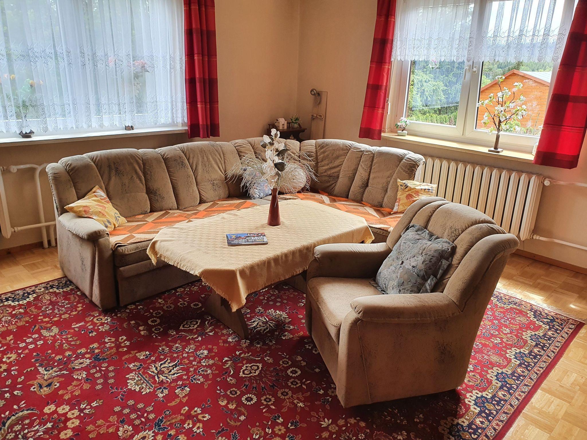 Das Haus bietet Ihnen ein großes Wohnzimmer mit einem gemütlichen Schlafsofa, einem Schaukelstuhl und einer Leseecke ? perfekt zum Entspannen nach einem Tag in der Natur. Für Unterhaltung sorgen Sat-TV , freies WLAN und eine Stereoanlage.