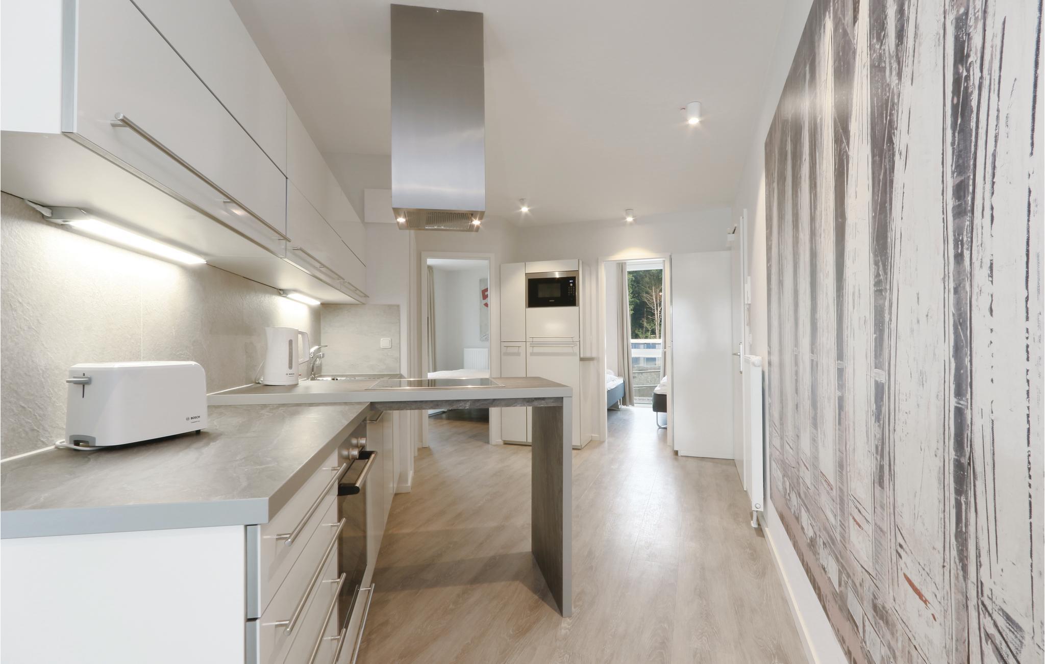 Lejligheden er stilfuld og moderne. Et særligt højdepunkt er badeværelset, jeres personlige lille wellness-område med sauna og dampbad med integreret regnbruser. Feel-good-programmet fortsætter i opholdsstuen, fordi bioethanol-pejsens flimrende flammer bader rummet i et særligt hyggeligt lys. Sofaen kan konverteres til to komfortable sovemuligheder i blot et par enkle trin. Selvfølgelig er lejligheden på BeachBay også udstyret med et moderne underholdningssystem inklusive Blu-Ray, musikanlæg og tv. I køkkenet finder kaffeelskere en Nespresso-maskine (medbring egne kapsler) samt en termokande og filter til selvbrygning, hvis I foretrækker den klassiske filterkaffe.
