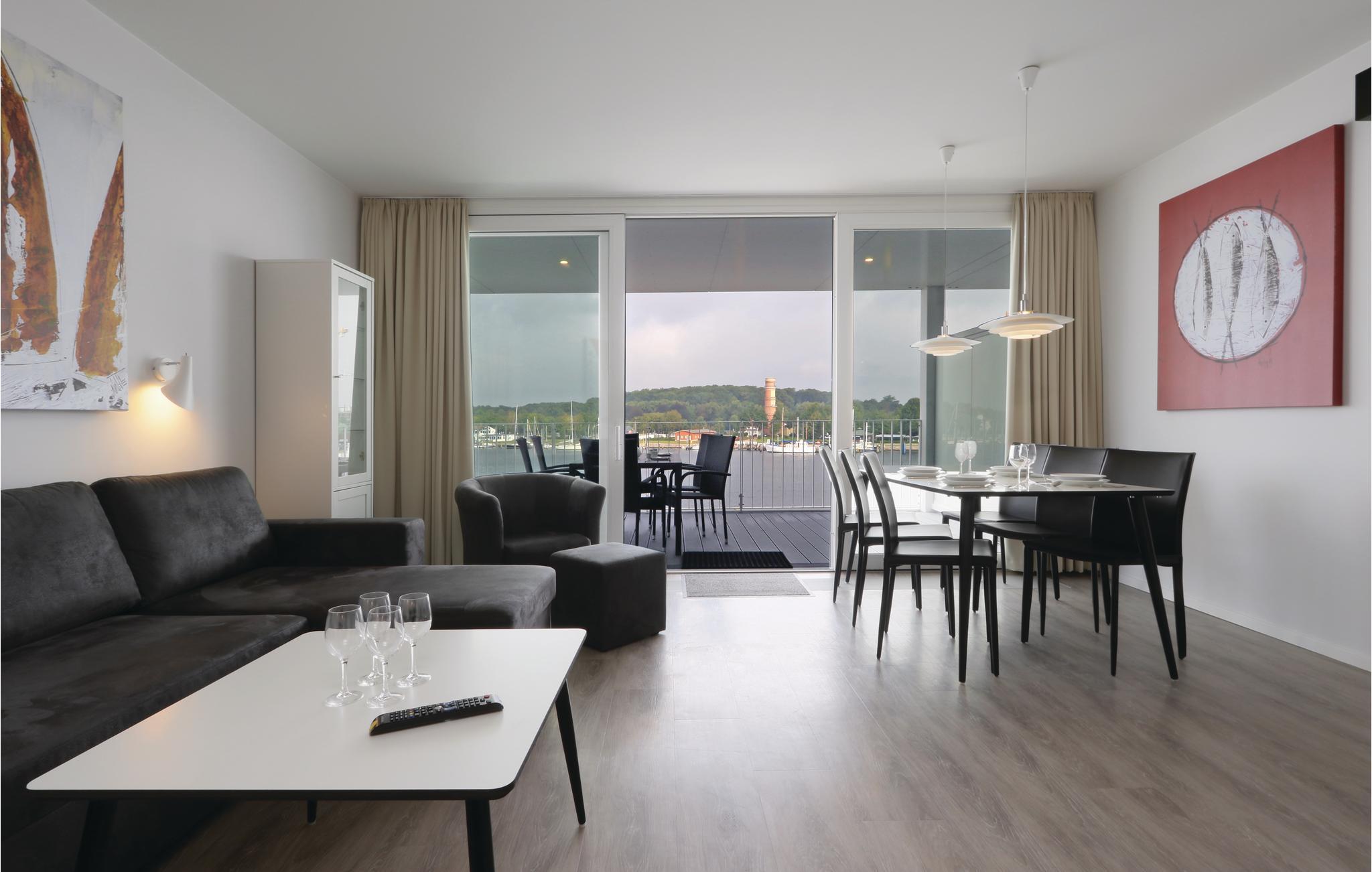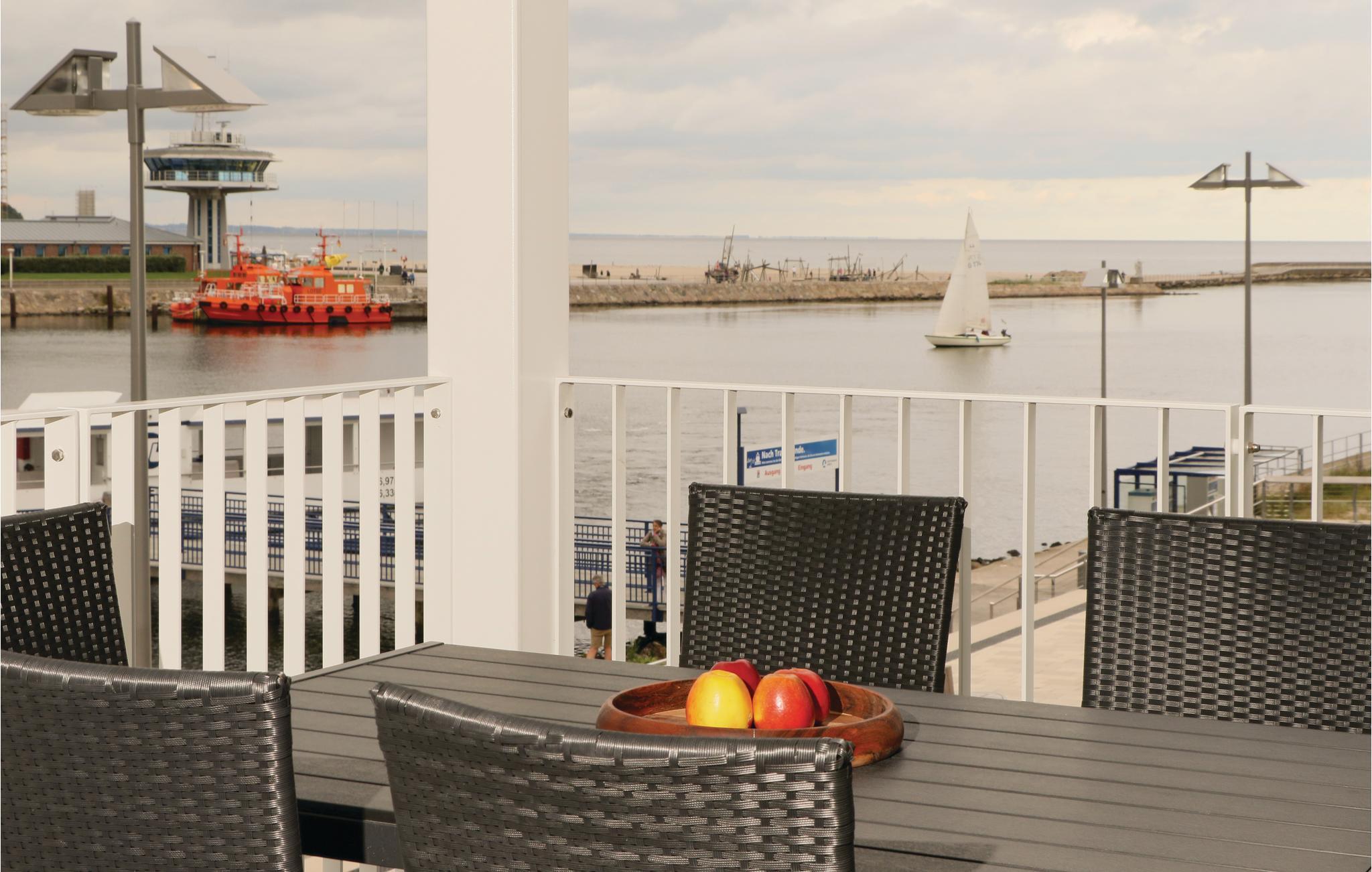 Nu kan I bestille jeres ferie i en ferielejlighed ved Østersøen og bo komfortabelt og med en uforglemmelig udsigt over marinaen, floden Traves udløb og Østersøen og holde en fantastisk dejlig ferie i Travemünde-Priwall. Ikke blot fra den store altan, men også gennem de store panoramavinduer kan I se det store museumsskib Passat og de store færger, der sejler til og fra Skandinavien – her er virkelig tale om en panoramaudsigt. Lejligheden er moderne indrettet, og alle rummene gennemstrømmes af lys.