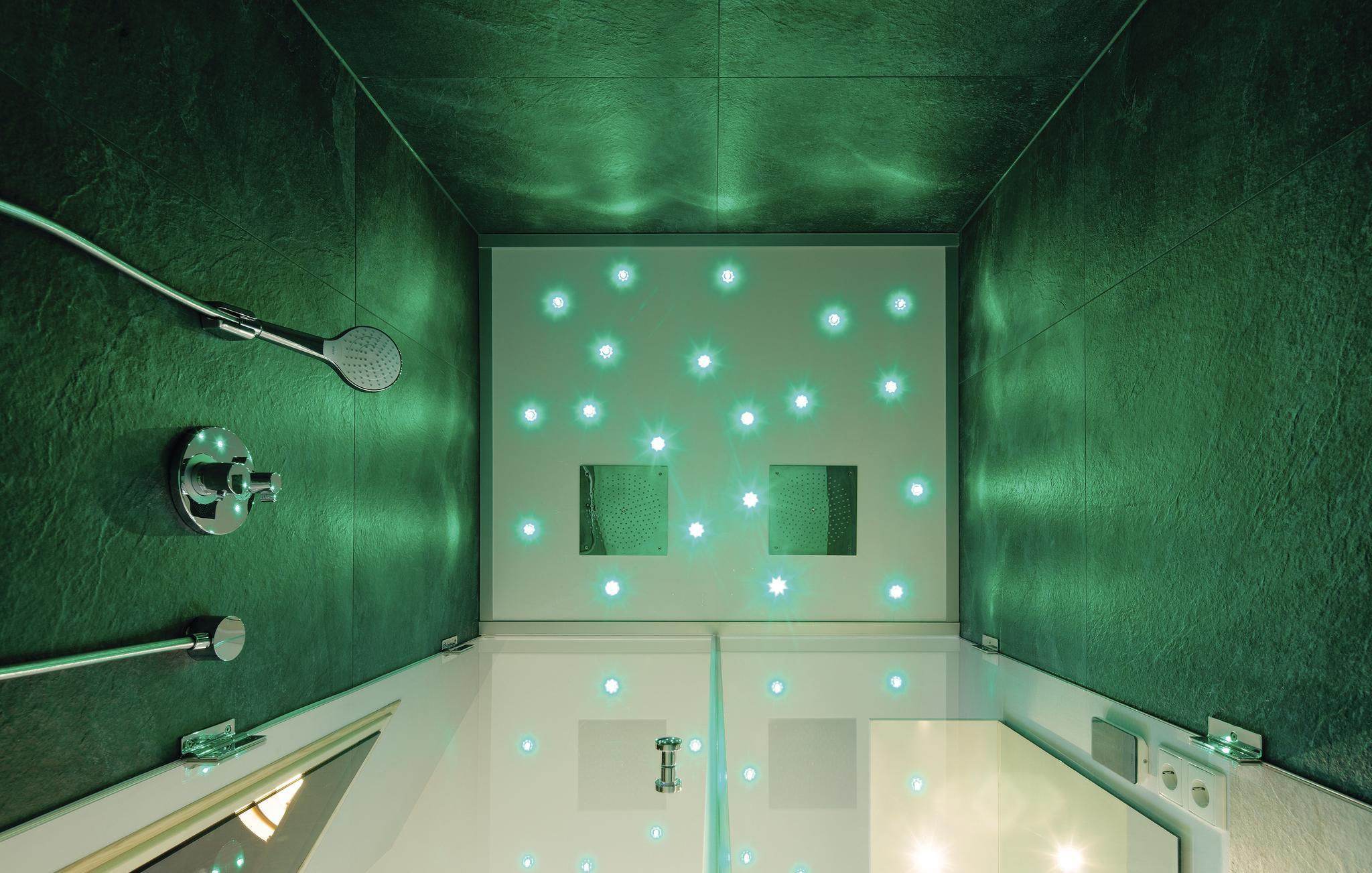 Noget særligt er badeværelset, der er jeres helt personlige lille wellnessområde med sauna, whirlpool og dampbad med integreret dobbelt regnskovsbruser. Her kan I slappe af og lade tankerne glide på langfart, glemme alt om hverdagens problemer og lade de flade batterier op igen. Ikke nok med det, når badet er slut kan I sætte jer foran de flakkende flammer i brændeovnen som giver et hyggeligt lys. Den bekvemme sofa lader sig nemt forvandle til to bekvemme sovemuligheder ved at trække i nogle få håndtag.