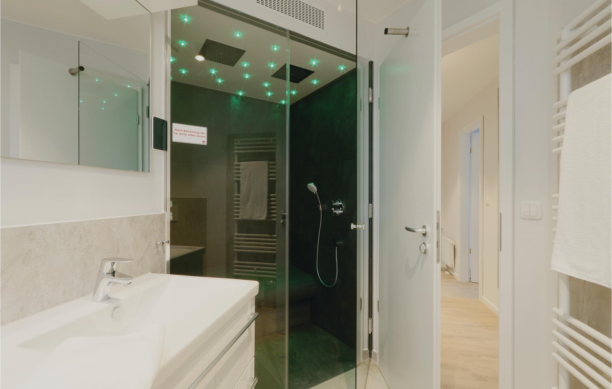 Noget særligt at badeværelset, der er jeres helt personlige lille wellnessområde med gulvvarme og dampbadet med integreret regnskovsbruser. Her kan I slappe af og lade tankerne glide på langfart, glemme alt om hverdagens problemer og lade de flade batterier op igen. Ikke nok med det, når badet er slut, kan I sætte jer foran de flakkende flammer i bioetanol-kaminen, som giver et hyggeligt lys.