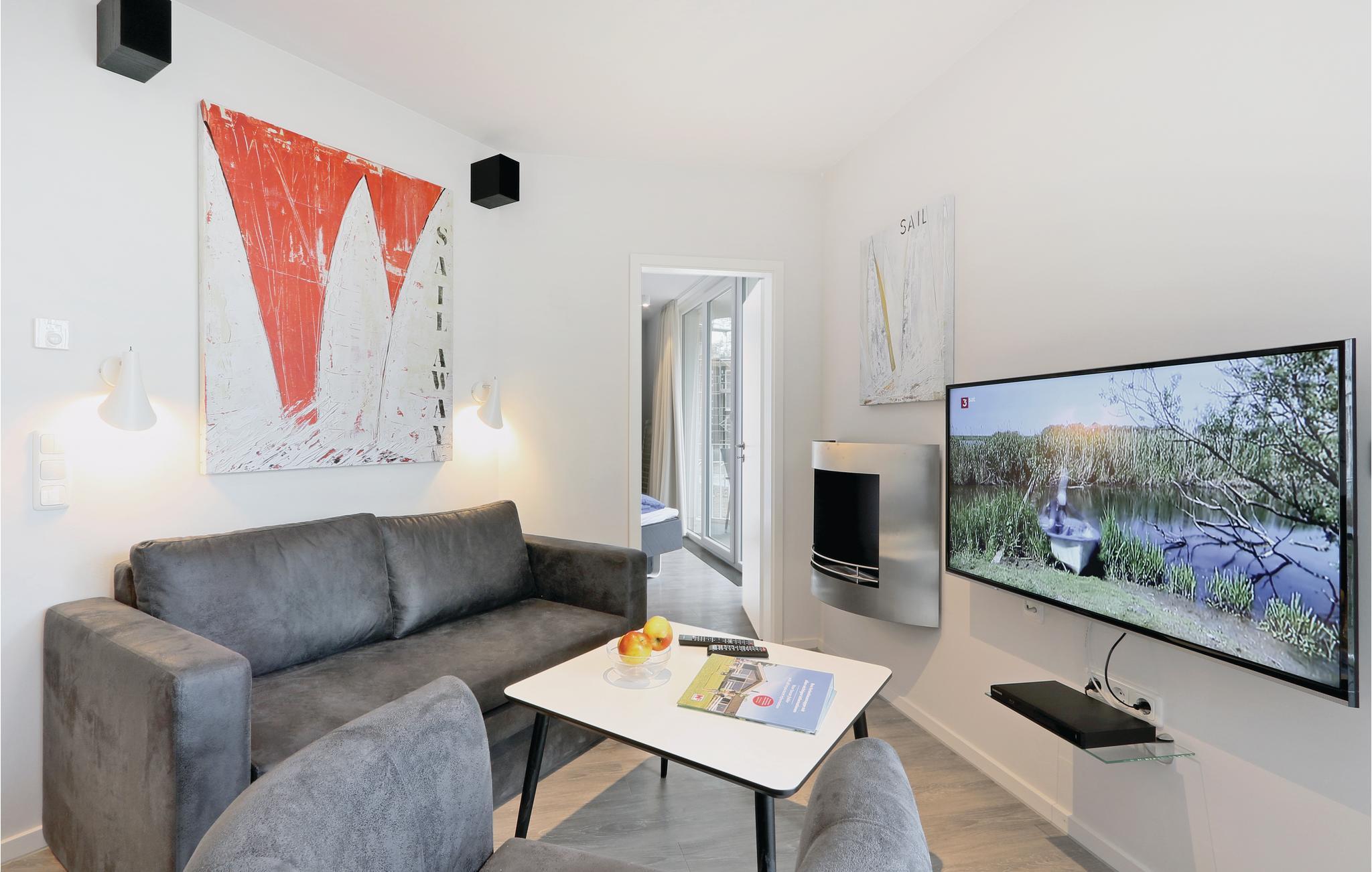 Den moderne indrettede ferielejlighed har rigelig plads til fire personer. Soveværelset har en fin dobbeltseng, og i opholdsstuen er der en sovesofa til to personer. Her er ligeledes en køkkenniche og en spiseplads. Efter en lang dag kan I hygge jer foran biokaminen, som bidrager til en hyggelig atmosfære i rummet. Altanerne kan nås enten fra soveværelset eller stuen. Her kan I sidde og spise jeres morgenmad eller bare nyde den friske østersøluft.