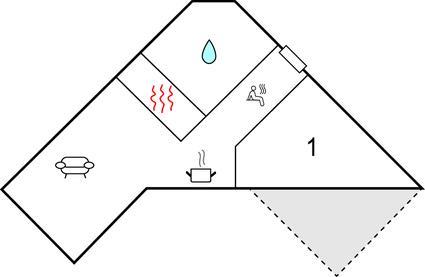 Opholdsstue/køkken - 2 Sovepladser. (Sofa, madras eller lignende).