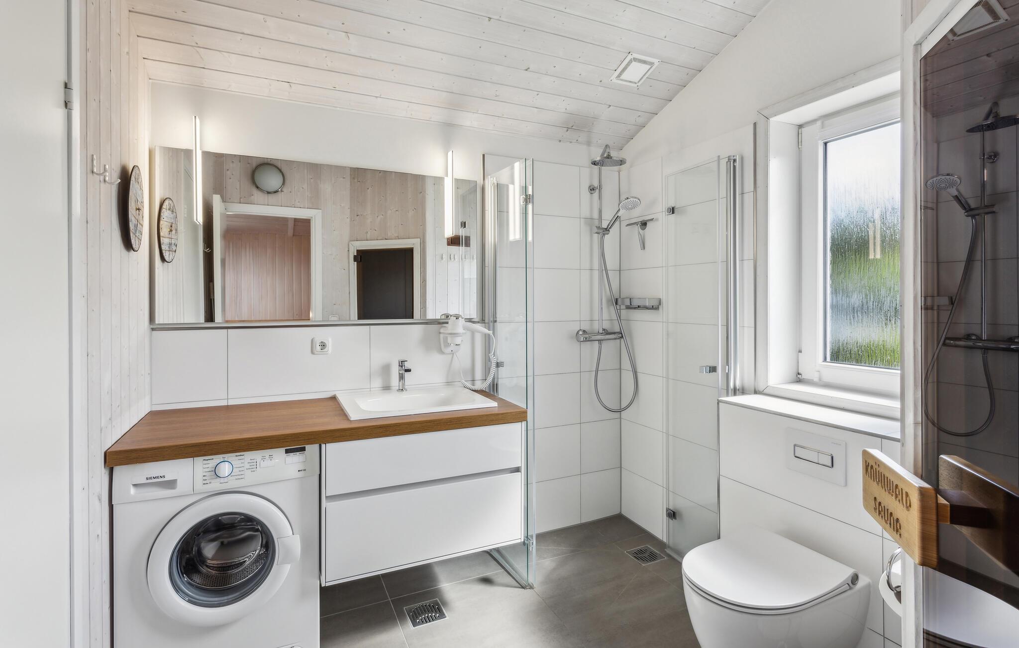 Takket være en sovesofa i opholdsområdet kan op til seks personer holde ferie her, endda lige ved 100 meter fra den kendte, brede sandstrand ved Travemunde-Priwall. Husenes highlight er det store badeværelse, der har en sauna. Det er tilgængeligt fra begge soveværelserne. Her kan I på køligere dage varme jer op igen efter lange gåture på stranden og slappe perfekt af i et aromabad. Bagefter kan I tilbringe hyggelige timer foran bioethanol-kaminen i dagligstuen og simpelt hen glemme hverdagen.