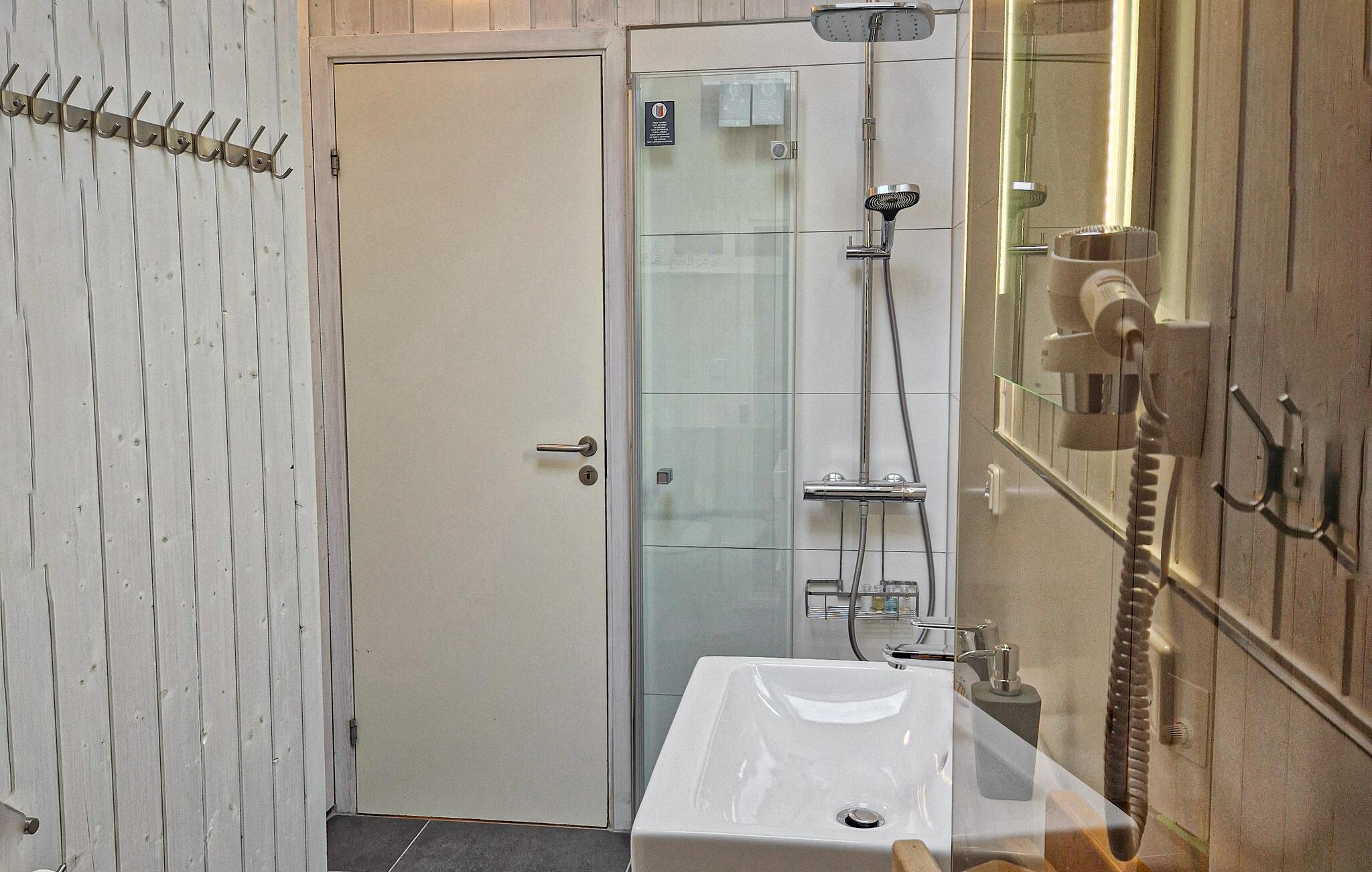 Feriehusets særlige attraktion er badeværelset med sauna hvor I kan få varmen efter jeres vandreture ude ved vandet på de lidt køligere dage. Bagefter kan I sætte jer ved kaminen i opholdsstuen, som på de kolde dage kan varme hele huset op.