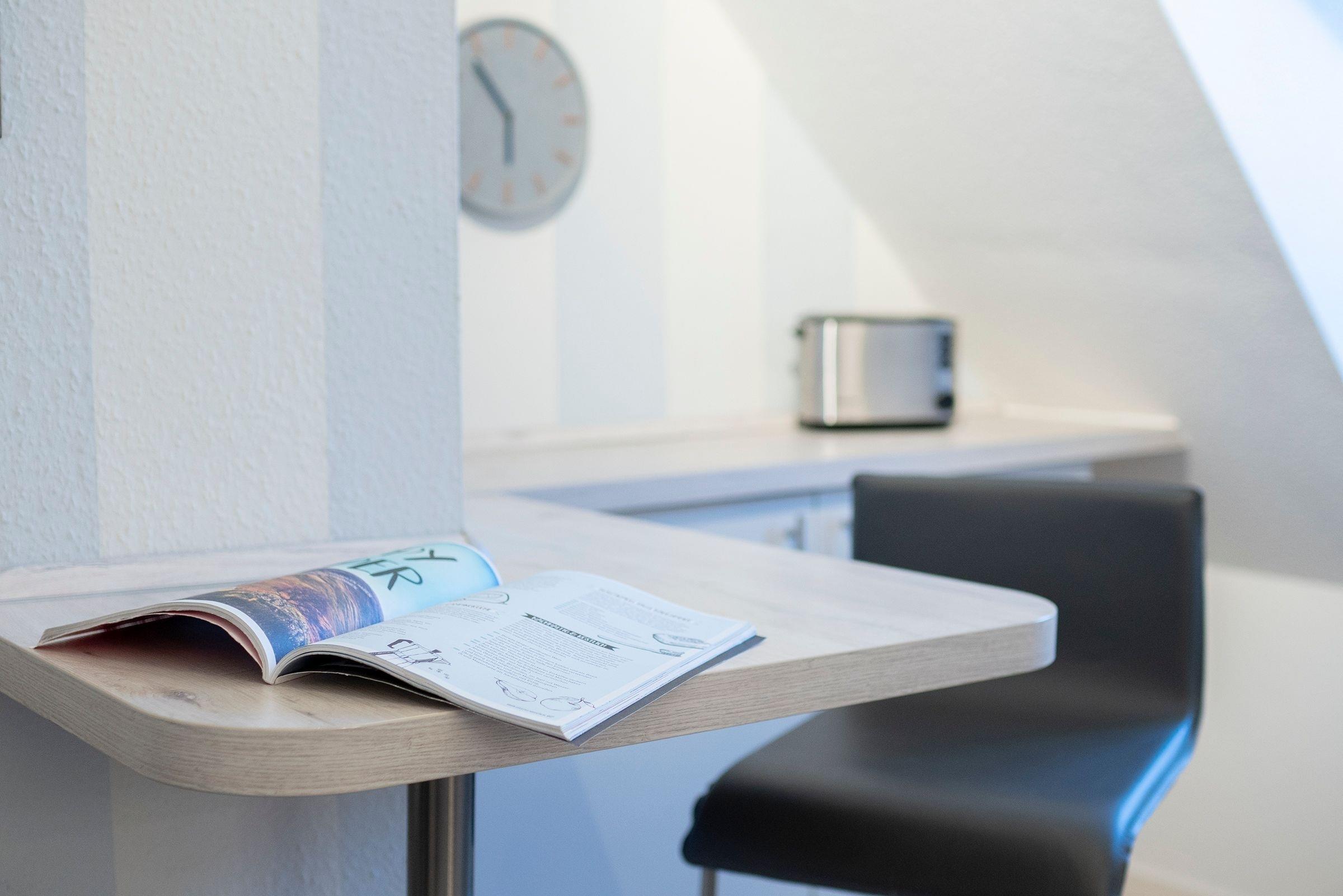 Schöne Wohnung, hübsch eingerichtet, alles sauber, Bett gemütlich. Die Ausstattung der Küche ist hervorragend und reicht von 2 Kaffeemaschinen (für Kapsel- und Filterkaffee),Toaster, Wasserkocher über Geschirrspüler bis hin zu ausreichend Geschirr, so dass man nicht nach jeder Mahlzeit spülen muss. Trotzdem es eine Dachwohnung ist (die allerdings nur über Treppen erreichbar ist), ist es sehr hell. Die Lage ist top!! Wir haben uns sehr wohl gefühlt! Ein bisschen teuer finde ich allerdings das Wäschepaket für 23,00? pro Paket.