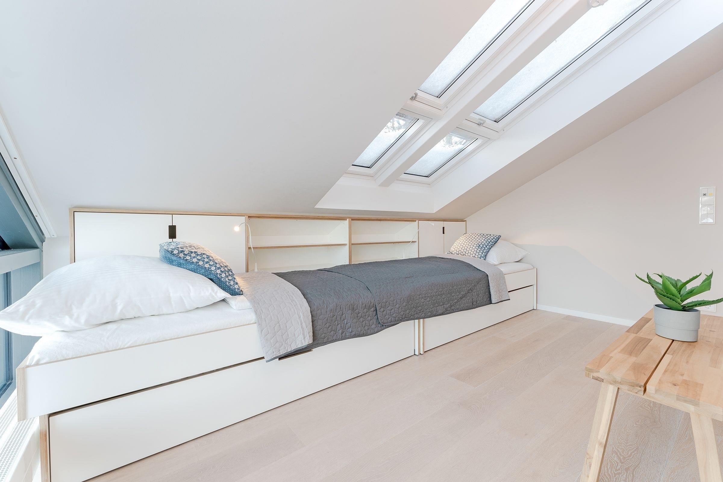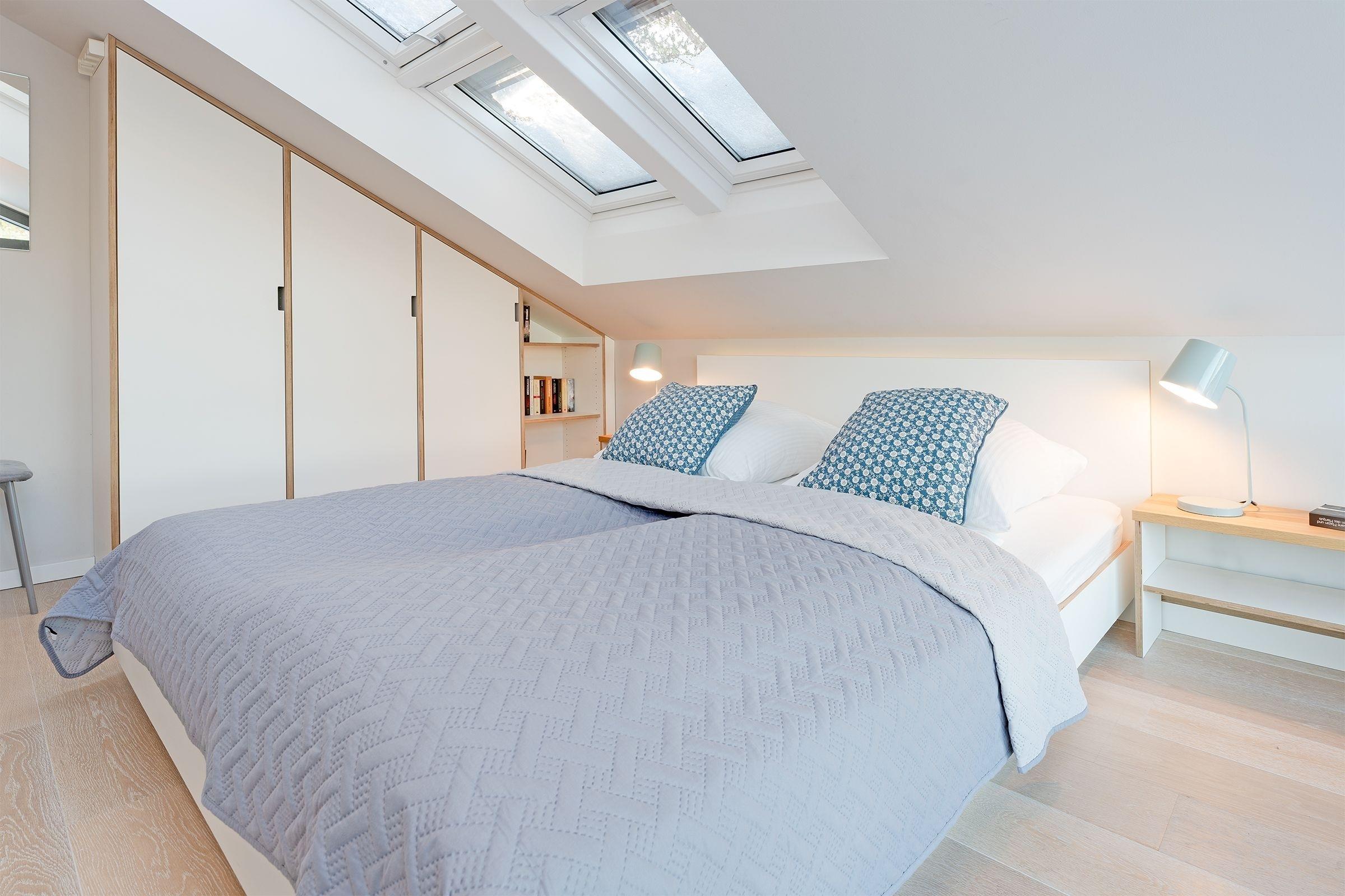 Schlafzimmer 2 (OG): 2 Einzelbetten (je 90x190cm), Kleiderschrank, Verdunkelung Dachfenster: elektr. Rolläden, Verdunkelung Fenster: Vorhänge