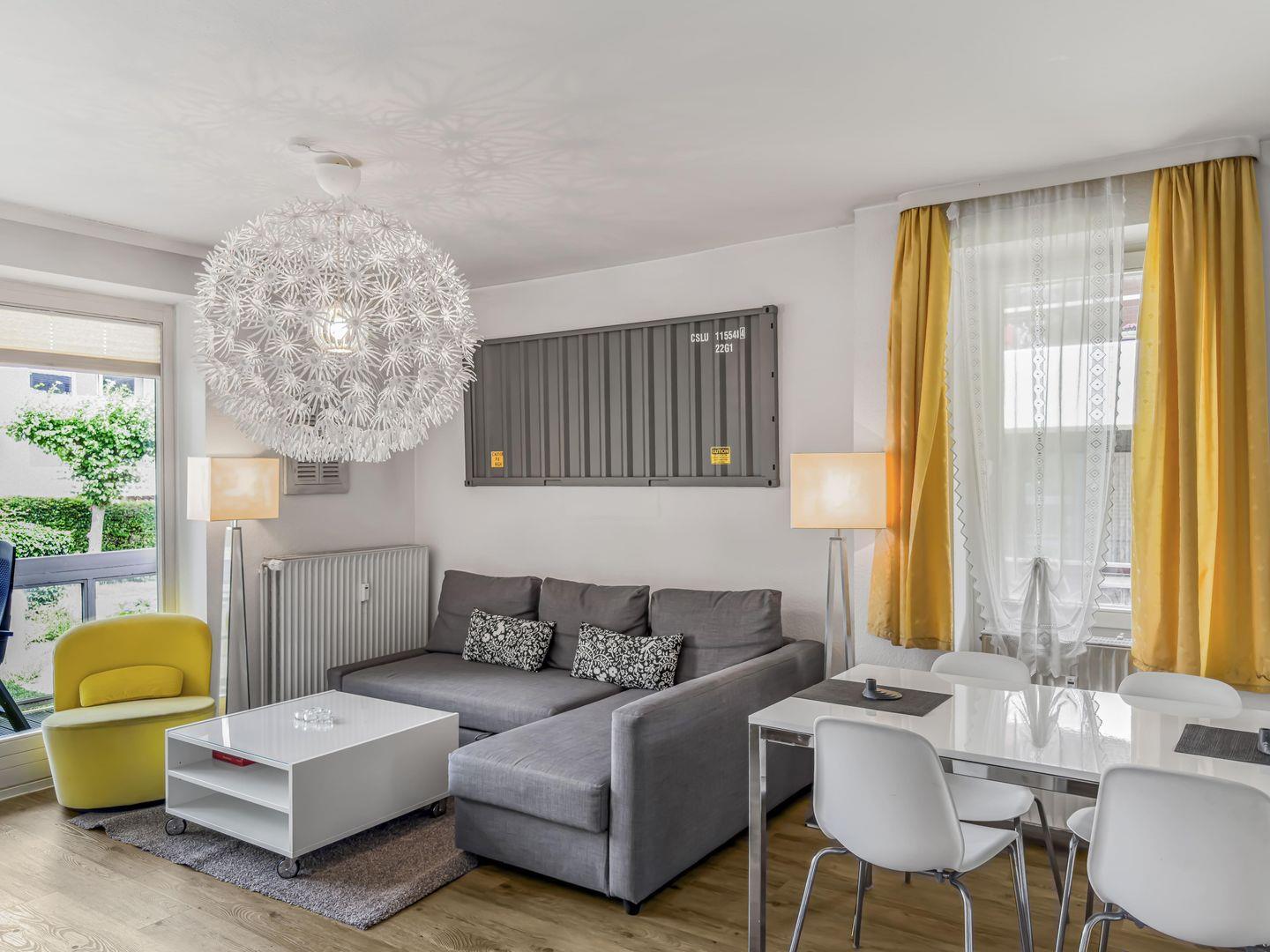 Dieses komfortable 2-Zimmer-Apartment im Hochparterre bietet auf ca. 55?m² ausreichend Platz für einen entspannten Aufenthalt. Es verfügt über ein Schlafzimmer mit Doppelbett, ein Duschbad sowie ein zusätzliches Gäste-WC. Die gut ausgestattete Einbauküche mit 4-Platten-Ceranfeld, Backofen, Geschirrspüler, Mikrowelle und einem hochwertigen Kaffeevollautomaten lädt zum Kochen – und Genießen – ein, während ein separater Essbereich für gemeinsame Mahlzeiten sorgt.