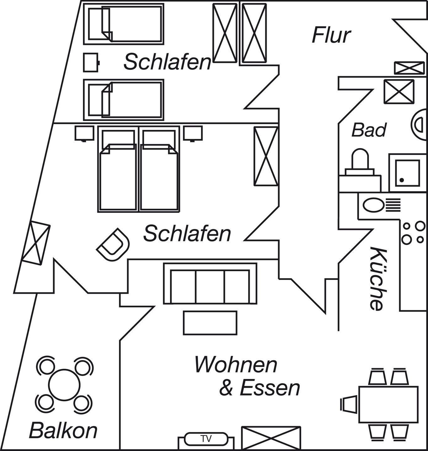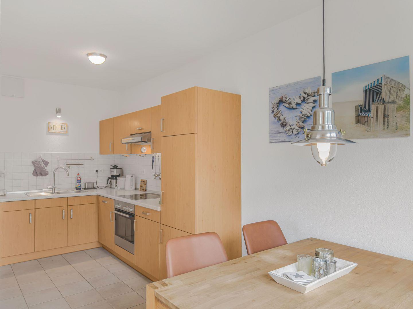 Dieses großzügige 3-Zimmer-Apartment im 1. Obergeschoss bietet auf ca. 70 m² modernen Komfort für Ihren Urlaub. Es verfügt über ein Schlafzimmer mit Doppelbett und TV sowie ein weiteres Schlafzimmer mit zwei Einzelbetten. Die gut ausgestattete Einbauküche mit 4-Platten-Ceranfeld, Backofen und Geschirrspüler lädt zum Kochen ein, während der separate Essplatz für gemeinsame Mahlzeiten sorgt. Im Wohnzimmer finden Sie einen TV und eine Musikanlage für Unterhaltung. WLAN ist ebenfalls verfügbar. Der Süd-West-Balkon bietet eine angenehme Möglichkeit, den Tag zu genießen. Ein Tiefgaragenstellplatz sorgt für zusätzlichen Komfort, und das Apartment ist barrierefrei über einen Fahrstuhl von der Tiefgarage aus erreichbar. Die zentrale Lage ermöglicht es Ihnen, Einkaufsmöglichkeiten und Restaurants bequem zu Fuß zu erreichen.