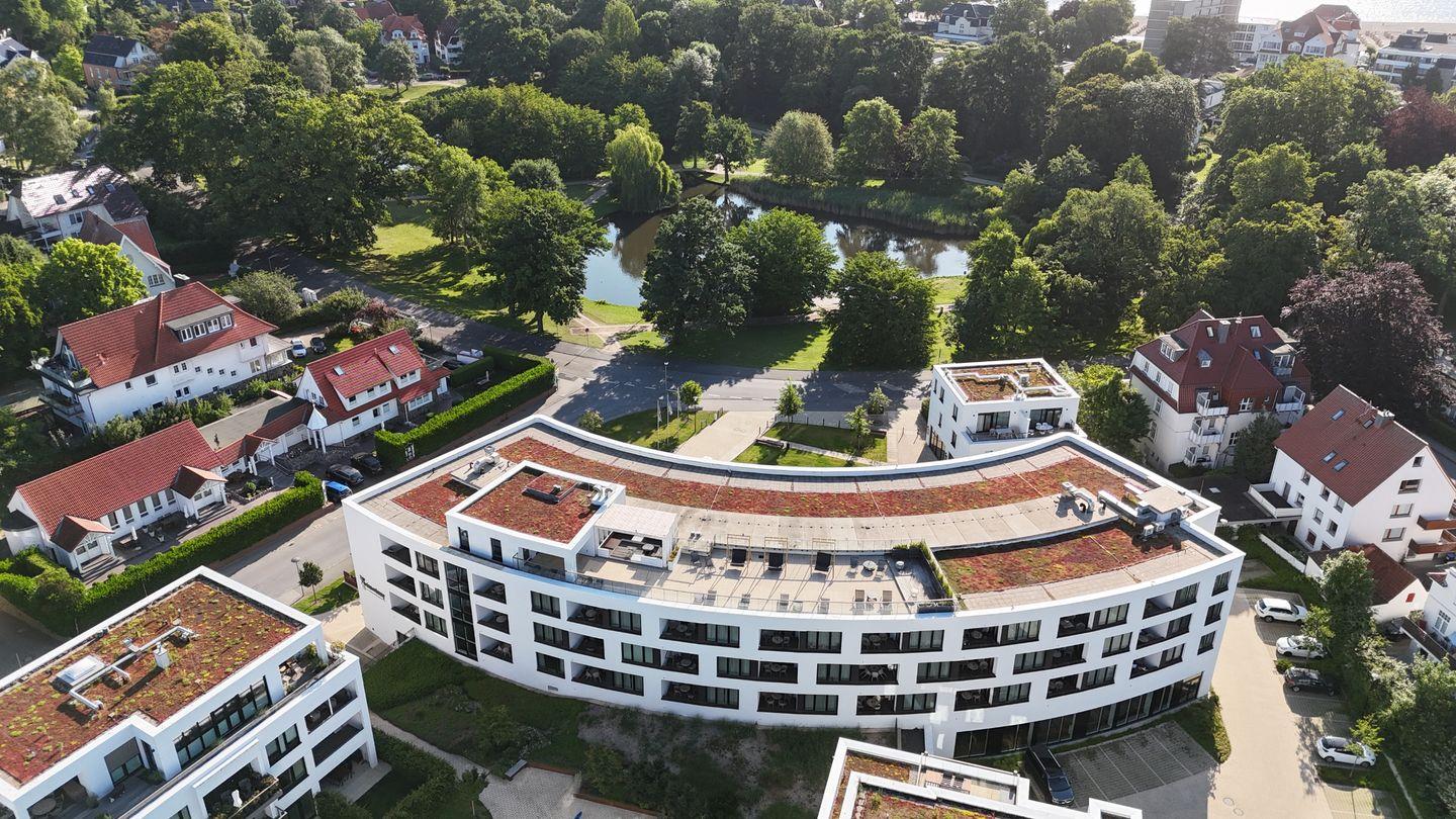 Ein ganz besonderes Highlight ist die überdachte Loggia in nordöstlicher Ausrichtung. Hier genießen Sie bereits am Morgen die Sonne bei einer frischen Tasse Kaffee und lassen den Blick in das üppige Grün des Parks schweifen. Die salzhaltige Seeluft und das beruhigende Vogelzwitschern machen diese Momente zu kleinen Urlaubsglücksmomenten – perfekt, um durchzuatmen und anzukommen.