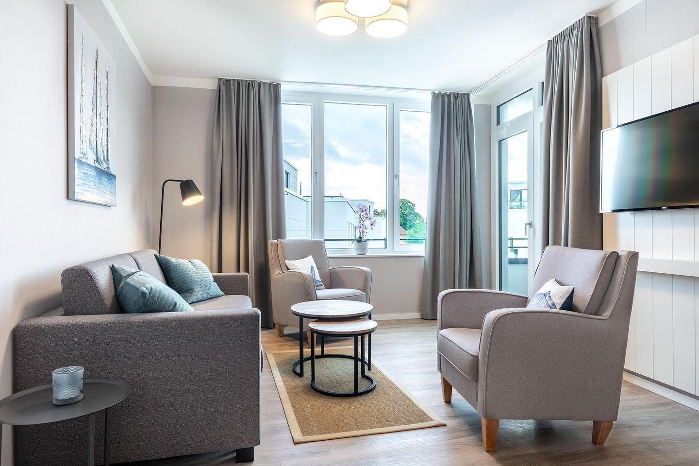 Dieses stilvoll eingerichtete 2-Zimmer-Apartment in unmittelbarer Nähe zur Ostsee bietet Ihnen auf 53 m² Wohnfläche modernen Komfort für bis zu vier Personen – ideal für einen erholsamen Urlaub in maritimer Atmosphäre.