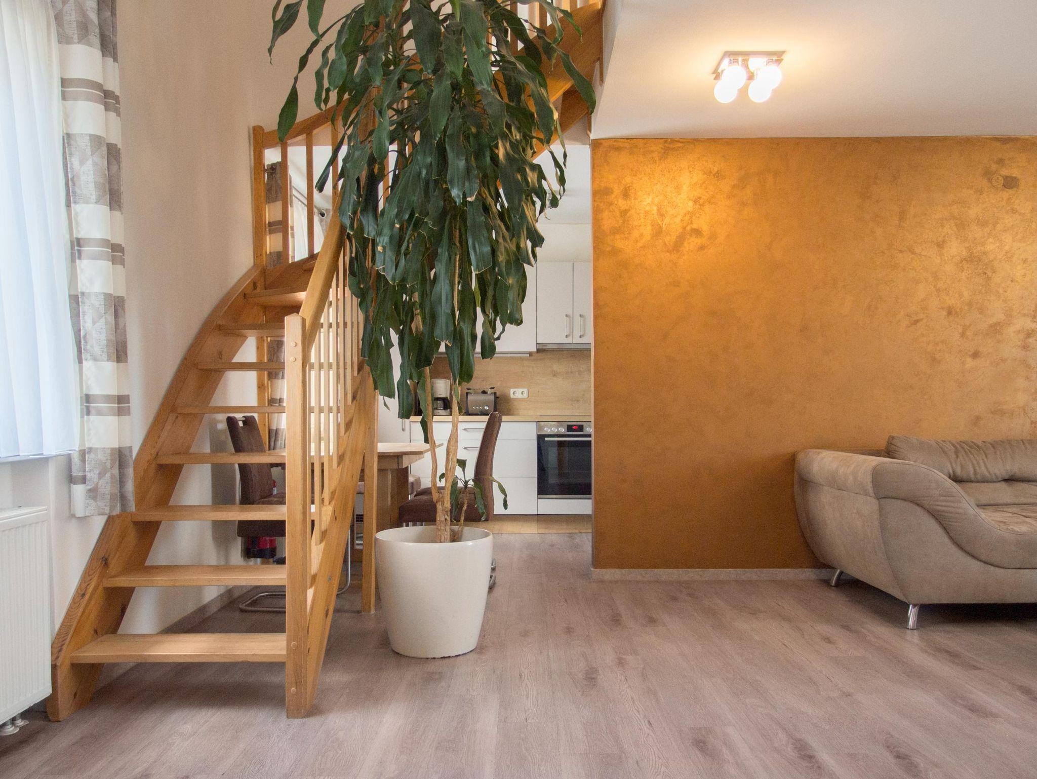 Die 75 qm große Galeriewohnung bietet Platz für 4 Personen. Sie finden eine voll ausgestattete Küchenzeile mit einem Herd und Backofen. Neben einem Esstisch können Sie es sich auf der großen Couch gemütlich machen und schöne Fernsehabende verbringen. Das Badezimmer ist mit einer Badewanne und einer Dusche ausgestattet, die Toilette ist separat. In den zwei Schlafzimmern finden Sie jeweils ein Doppelbett. Ein großer Schrank bietet genug Stauraum. Bettwäsche und Handtücher einmalig pro Woche im Preis inbegriffen!