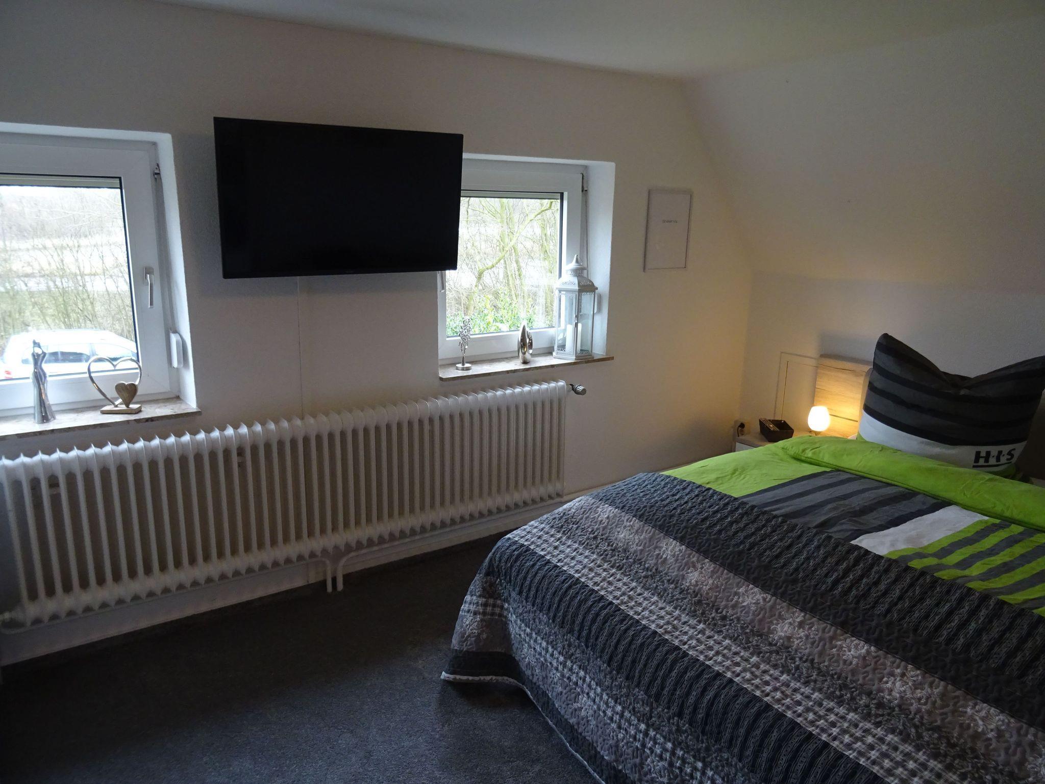 Im Obergeschoss befinden sich zwei Schlafzimmer, beide sind mit einem Flachbild - TV ausgestattet.