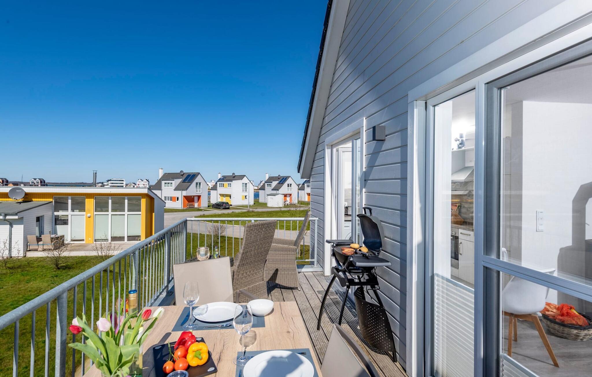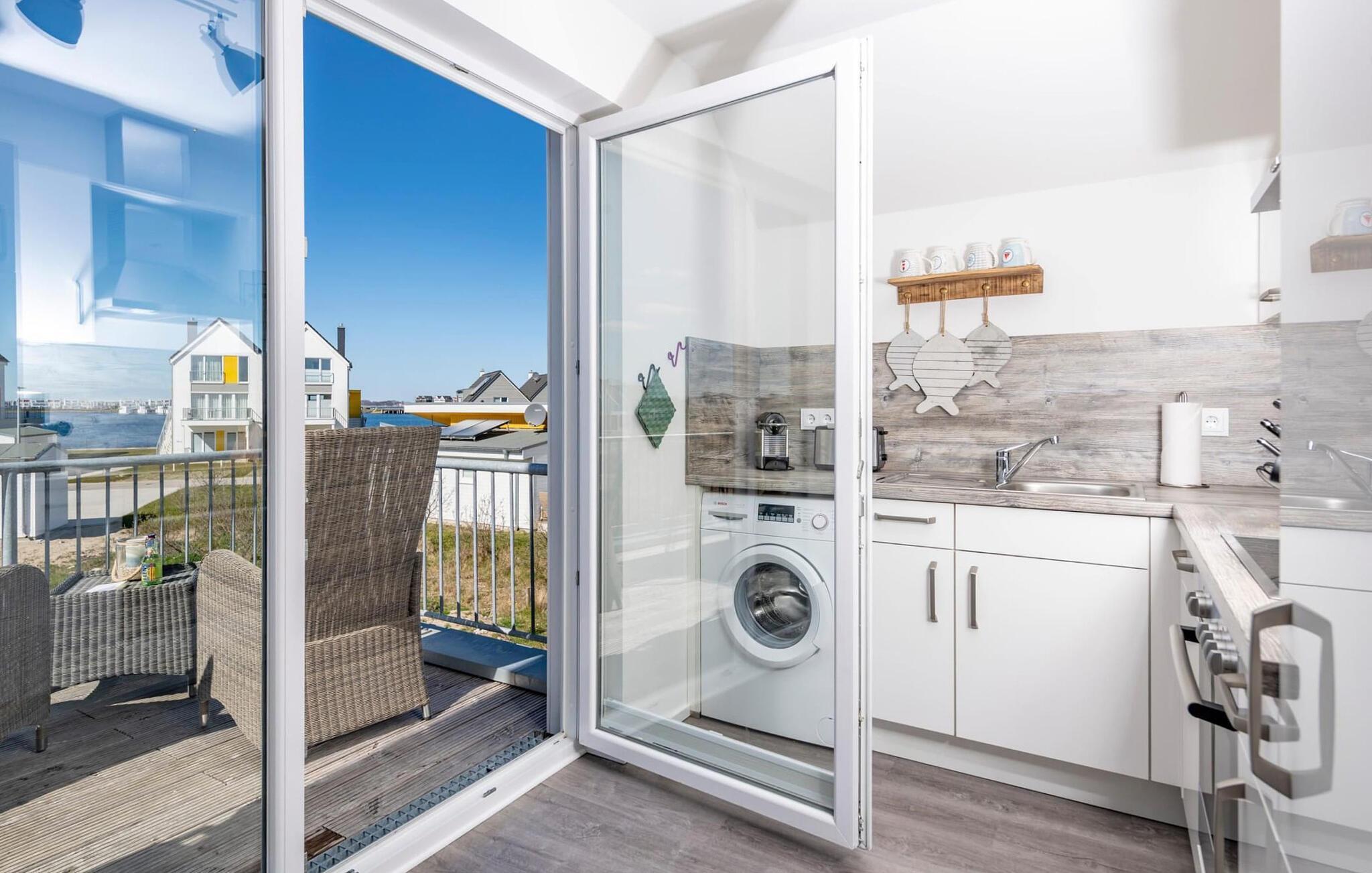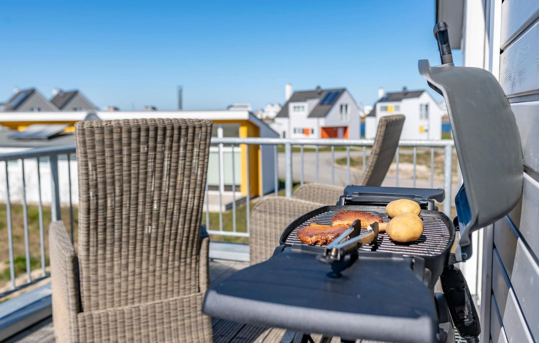 På ferien er der tid til kreativ madlavning, det fuldt udstyrede moderne køkken-alrum lader intet tilbage at ønske og har desuden mikroovn og fryser. Den sydvestvendte terrasse i direkte tilknytning til spisepladsen byder på hyggelige grillaftener og fantastiske solnedgange. Spis morgenmad i morgensolen på den overdækkede nordøstlige terrasse. Når vilde gæs og ænder vågner, kan de tidligt opstående se solopgangen her og derefter tage på en strandløb eller en tidlig svømmetur.