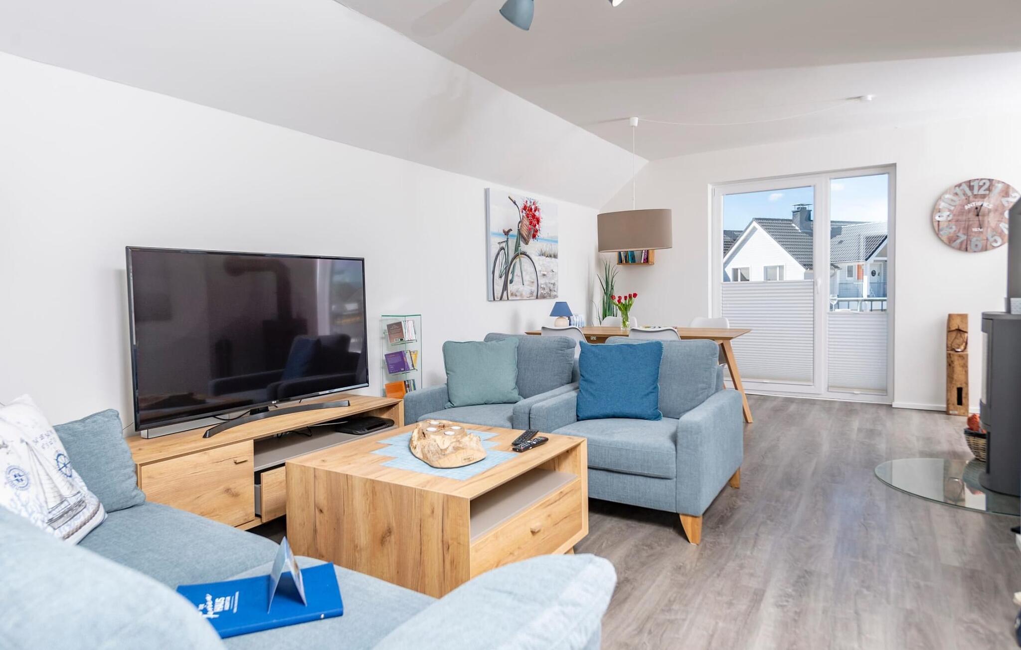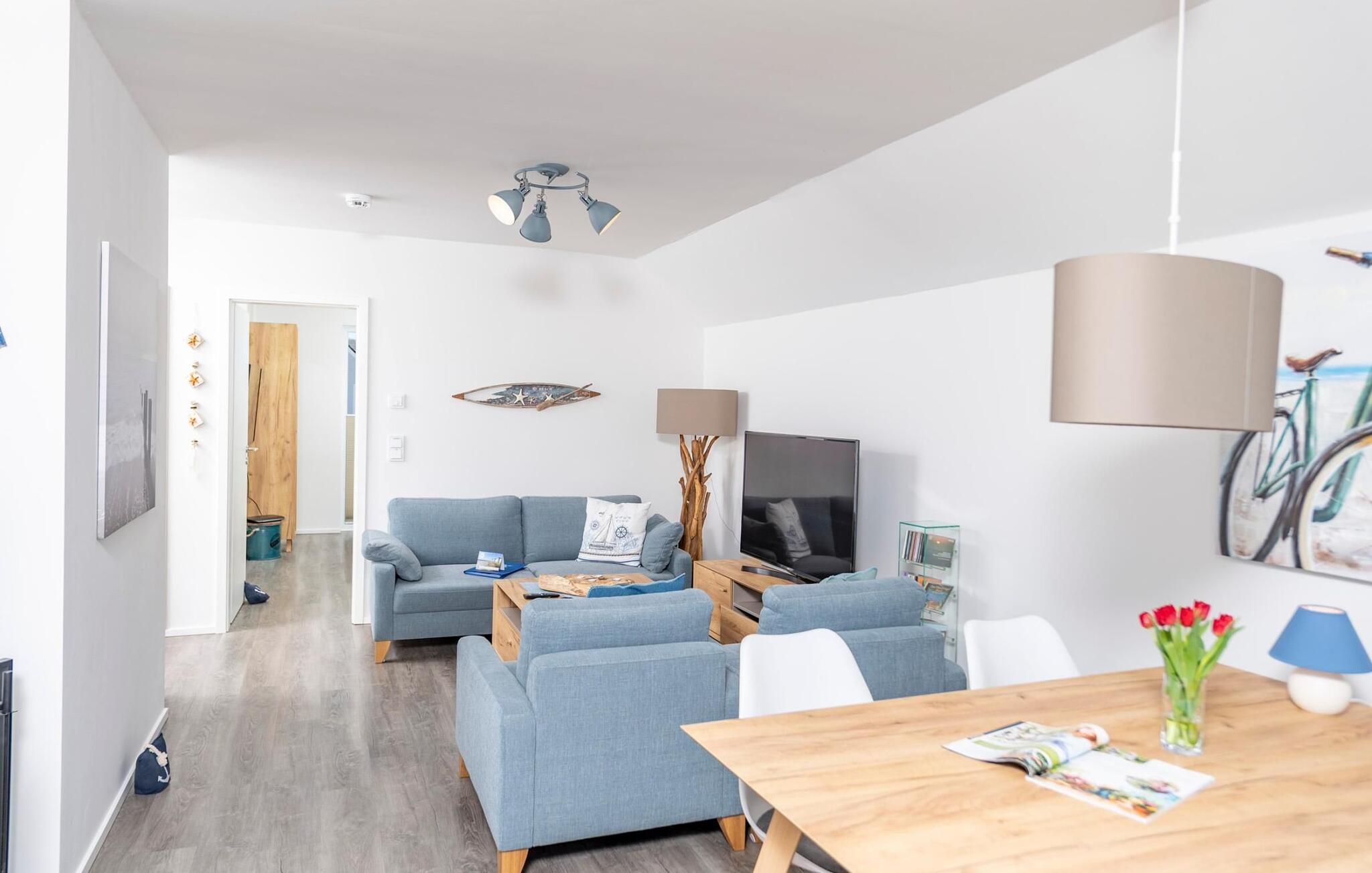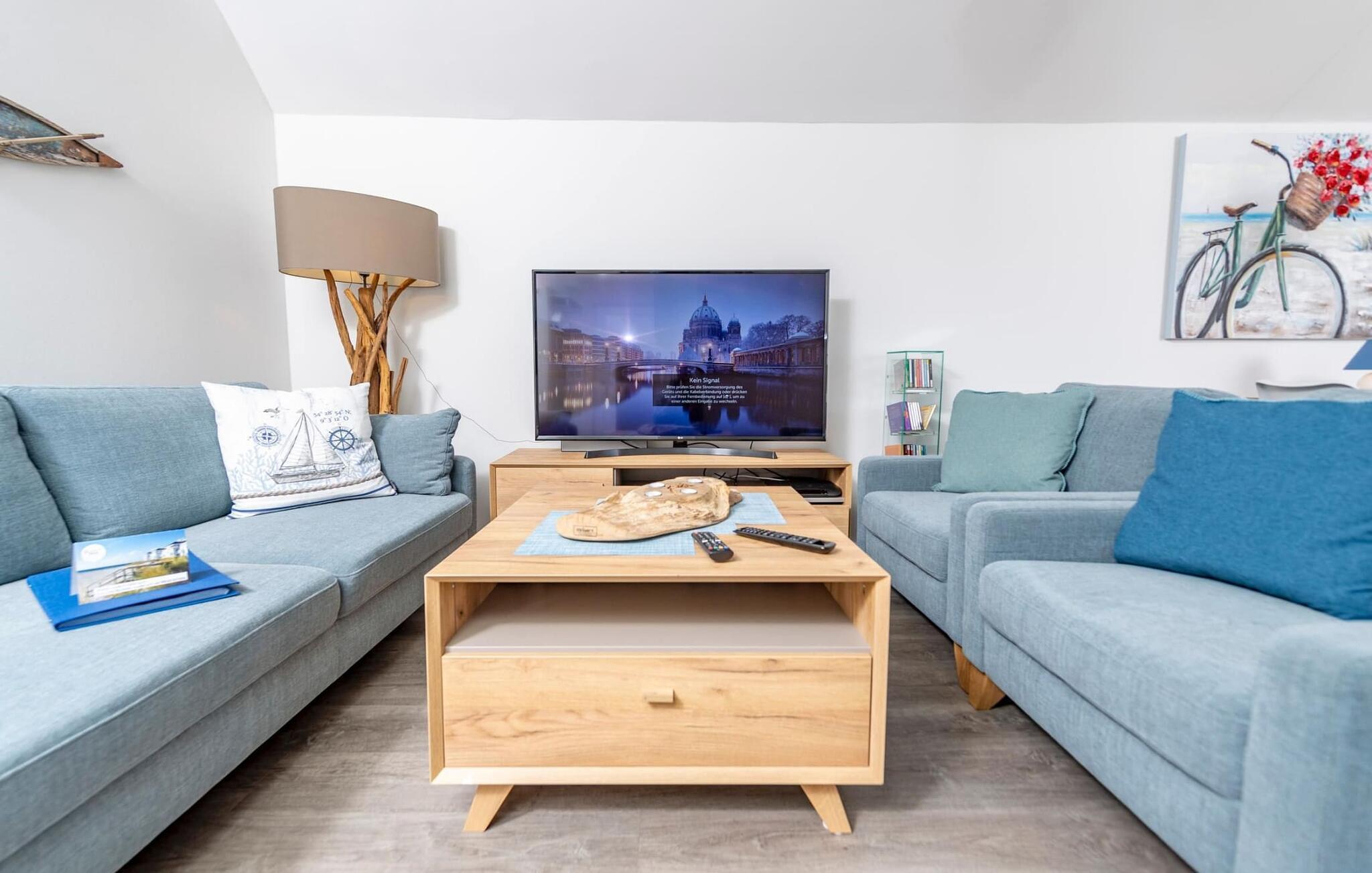 Det bliver hyggeligt i den hyggelige sofa. Wi-Fi og Smart TV med Telekom hjemmeunderholdningsprogram samt brætspil giver også indendørs underholdning på dårlige vejrdage.