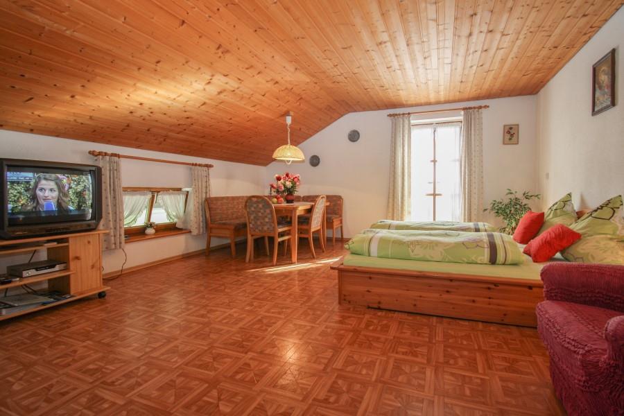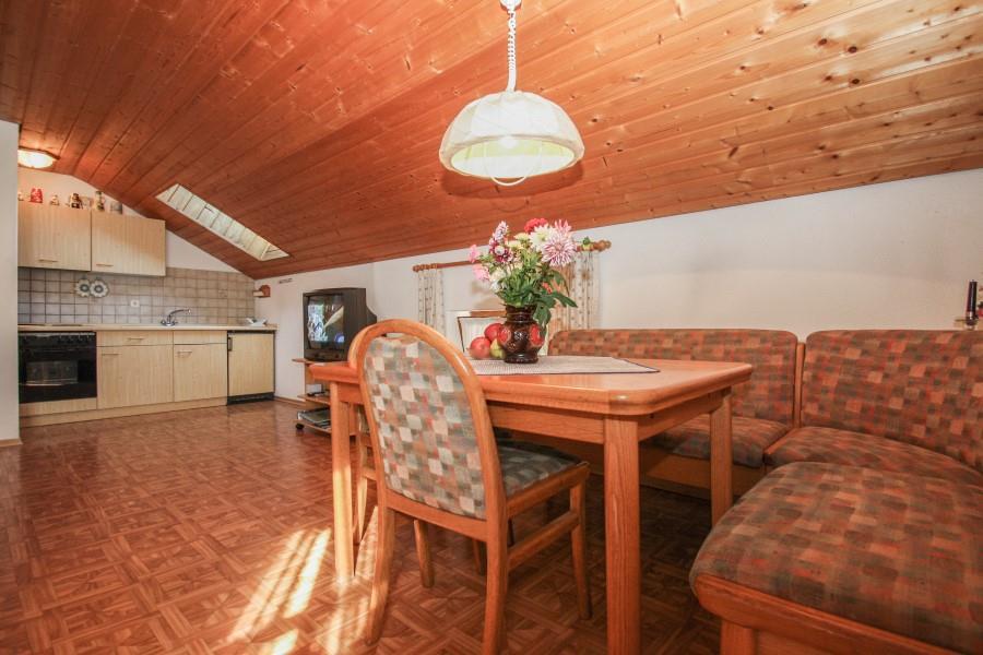 The apartment Waldblick with balcony offers 60 m² of living space for 4 - 5 persons. If you wish, you also have the possibility of a bread service. It has a large living/bedroom with additional children's room, kitchenette, dining area, shower and toilet, east balcony with view to the Alz.