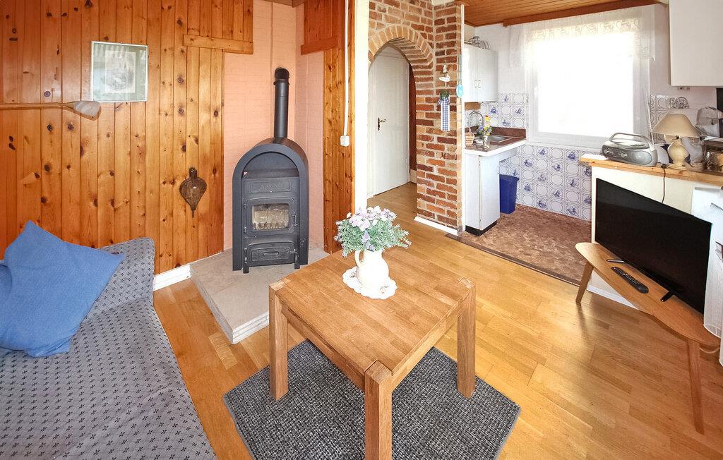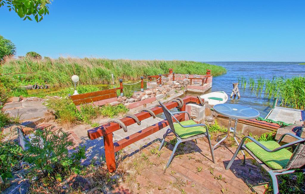 De otte feriehuse ligger på en 2500 kvadratmeter stor natur-/vandejendom direkte ved Szczecin-lagunen. Hvert sommerhus er individuelt og separat. En sti fører fra ejendommen direkte til stranden (ca. 50 m). Alle feriehuse har en møbleret terrasse eller et udendørs opholdsområde med grill og en parkeringsplads direkte ved bungalowen. Dette feriehus er udstyret med opholdsstue med sovesofa, opholdsområde og pejs, soveværelse med dobbeltseng, spisestue, tekøkken med el-komfur, bad/toilet, elvarme. Det er lige ved vandet. En robåd, en tømmerflåde og en overdækket terrasse lige ved vandet med grill, rygeområde og bålplads står til fri afbenyttelse. Guidede motorbådsture er mulige efter aftale. Den samlede pris inkluderer: slutrengøring, sengelinned, håndklæder, vand og energiforbrug. Betales på stedet: turistskat. En lille hund på op til 40 cm er tilladt i denne ejendom i månederne juli-august. Uden for denne tid er større hunde også tilladt. Bellin, et distrikt i havnebyen Ueckermünde, er et lille feriested i et skovområde direkte ved Szczecin-lagunen. Butikker, restauranter og to strande er i byen. Der er cirka 5 km til Ueckermünde med dens zoologiske have og havn. Herfra er udflugter med passagerskib til Polen og øen Usedom mulige.
