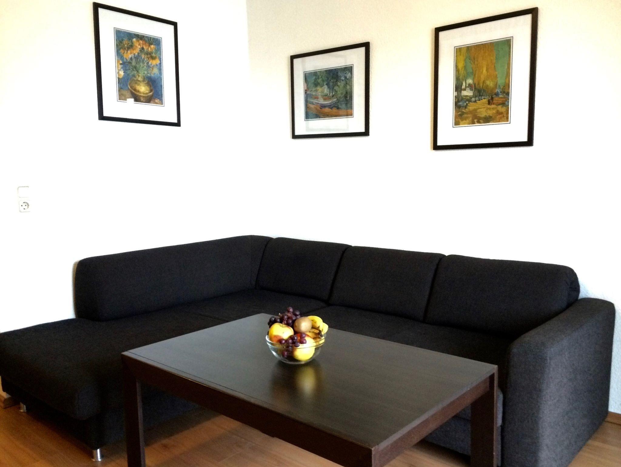 Die 46 m² große Wohnung ist modern ausgestattet und verfügt über einen Wohnraum mit ausziehbarem Schlafsofa für zwei Personen (1,95 m x 1,4 m), einem Essplatz für vier Personen, einem Flachbildfernseher und einem Radio mit CD-Spieler. Das Schlafzimmer verfügt über ein Doppelbett (1,80 m Breite), einen großen Kleiderschrank und einer Kommode. Gerne stellt Ihnen der Vermieter auch kostenfrei ein Babybett zur Verfügung. Eine zum Wohnraum offene Küche mit E-Herd, Backofen, Kühlschrank mit Tiefkühlfach, Kaffeemaschine, Toaster und einem Wasserkocher lässt keine Wünsche offen. Ein Badezimmer mit Dusche, WC, Waschbecken, Föhn und Zentralheizung ist ebenfalls vorhanden. Alle Fenster sind mit Fliegengittern und die Terrassentüren sind jeweils mit einer Insektenschutztür versehen. Die Ferienwohnung hat einen Kabelanschluss und verfügt im gesamten Objekt über WLAN. Auch einige Gesellschaftsspiele warten hier schon auf Sie.