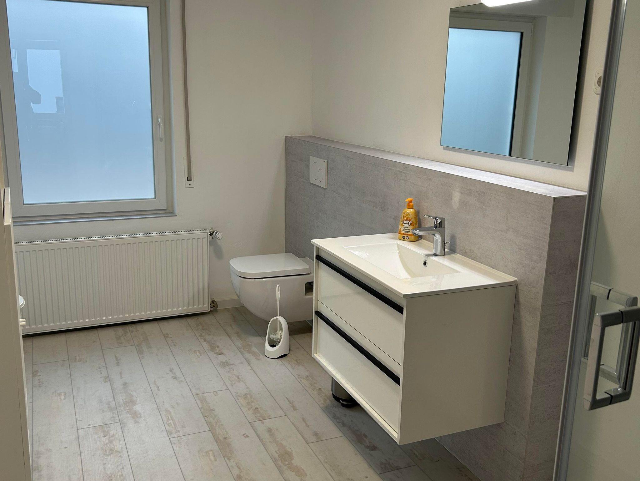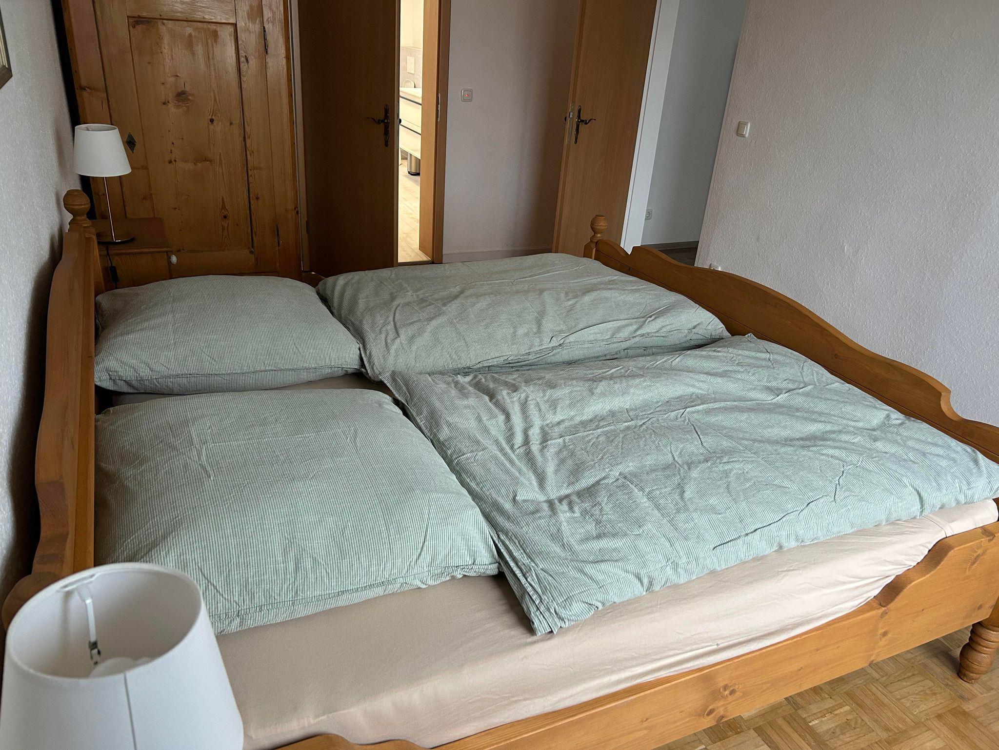 Der Zugang zum Badezimmer ist nur durch das Schlafzimmer mit Doppelbett möglich. Bitte dies bei der Belegung der Schlafcouch im Wohnzimmer beachten.