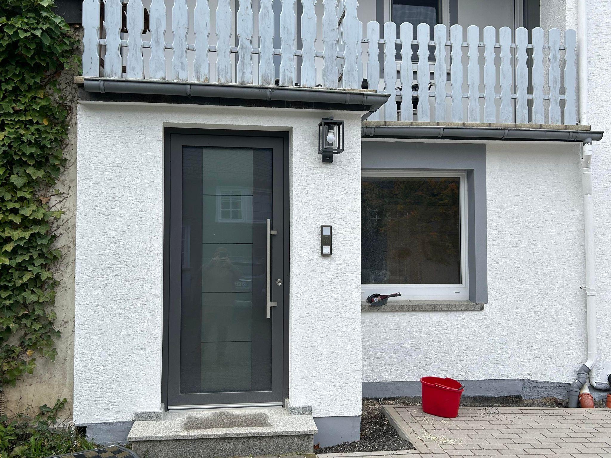 Die Wohnungen sind in einem ehemaligen Bauernhaus mit separaten Eingängen untergebracht. Das Haus befindet sich im Ortskern von Uhler und liegt idyllisch an einem ruhigen Innenhof umrahmt von einem Ensemble aus Schiefernhäusern. Ein PKW-Stellplatz steht für jede Wohnung direkt vor dem Haus zur Verfügung.