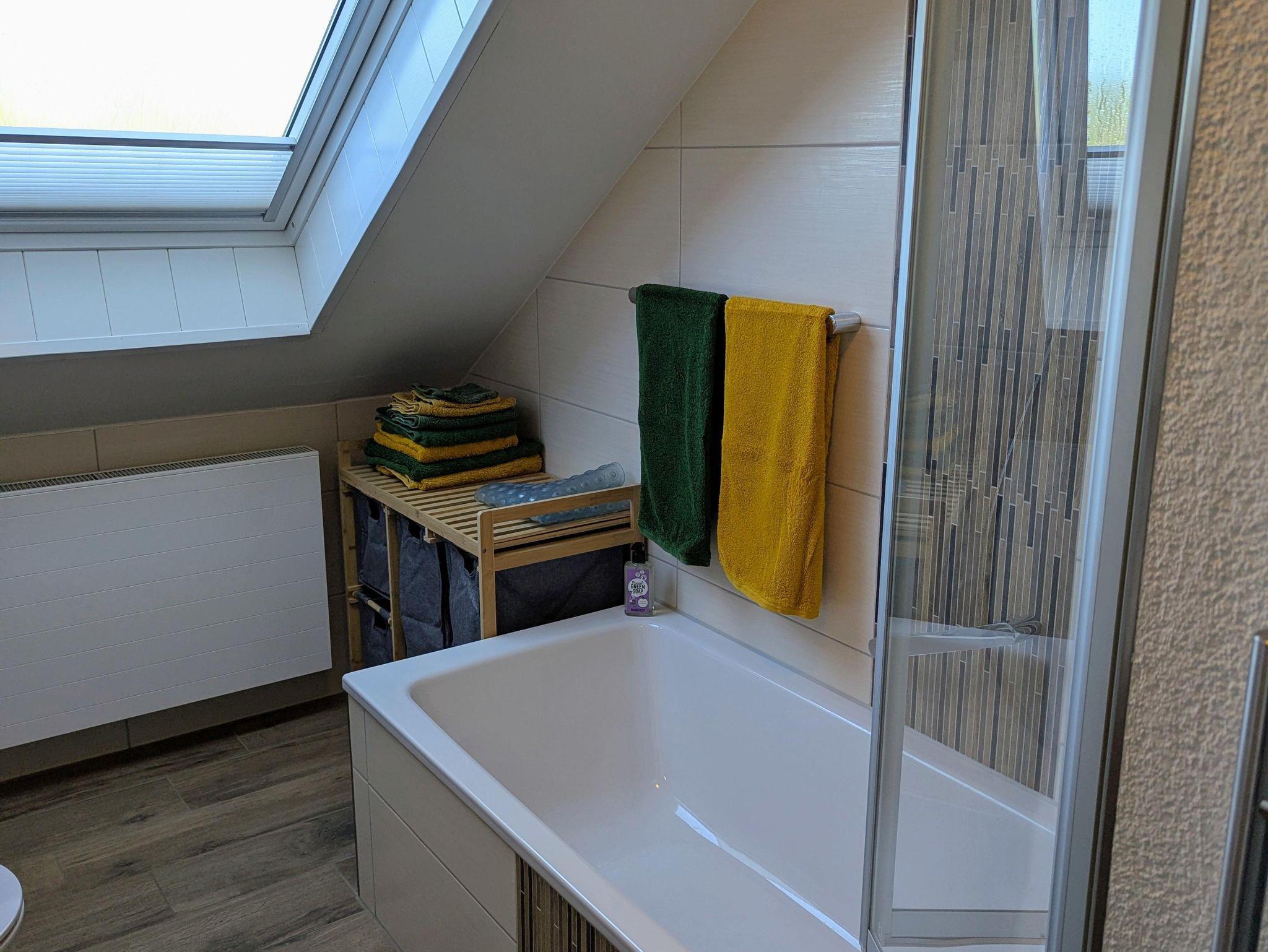 • Bad mit Wanne + Dusche, inkl. Seife, Handtücher, Föhn und Toilettenpapier, etc.; ?