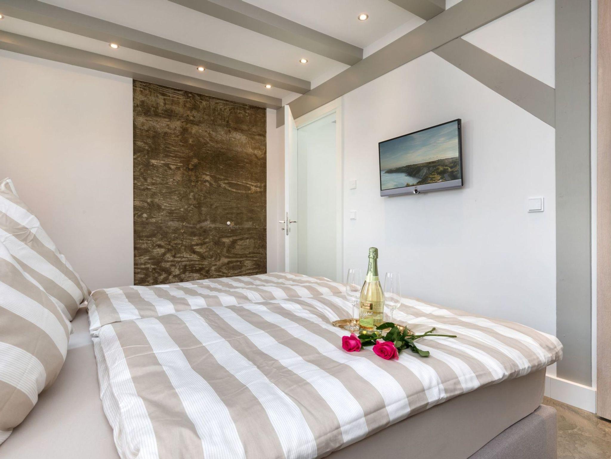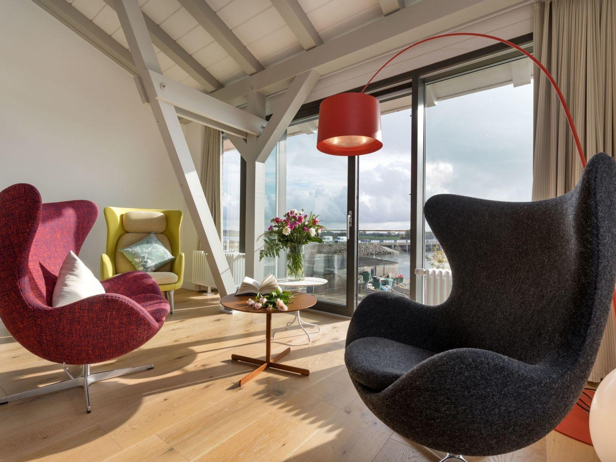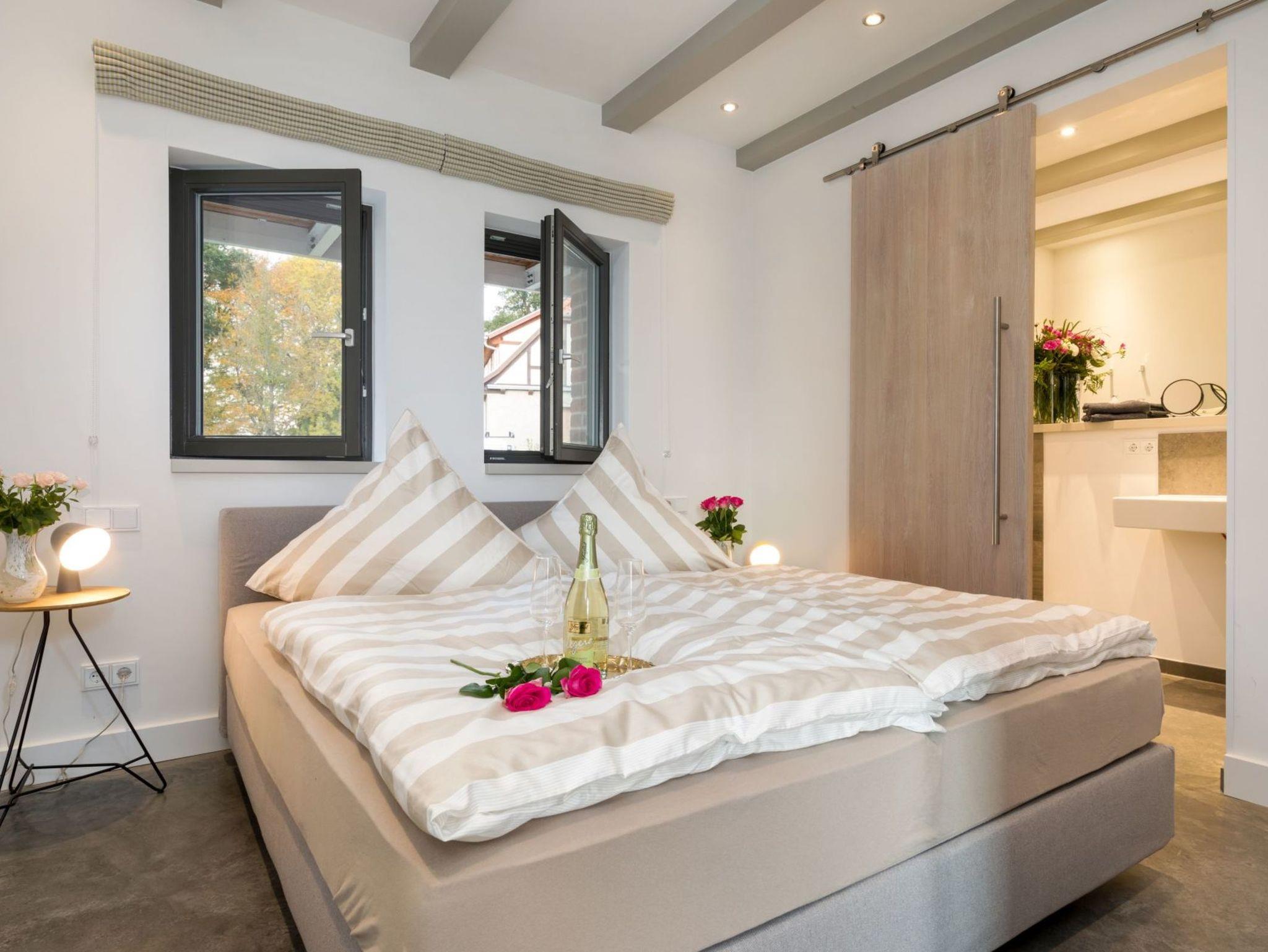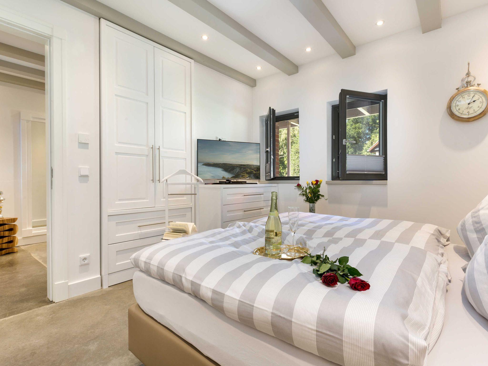Vor allem aber hat die Aussicht vom Wohnzimmer aus ihren Reiz, denn dort kann man seinen Blick über den Ausläufer der Ostsee schweifen lassen. Der Balkon auf der Westseite lädt darüber hinaus dazu ein, die Sonnenstrahlen ganz entspannt zu genießen.
