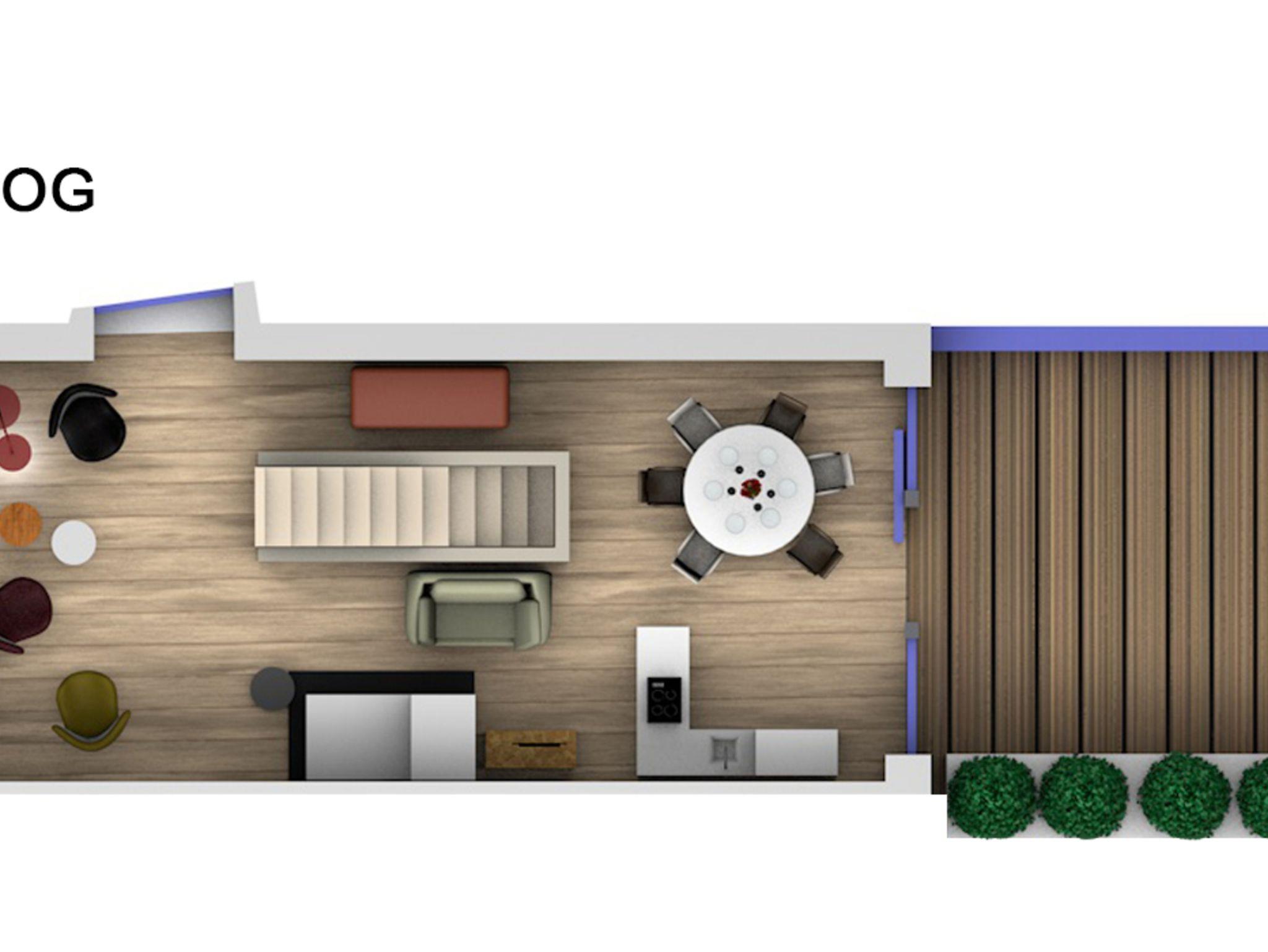 Während sich der großzügige Schlafbereich im Erdgeschoss befindet, beeindruckt der Wohnbereich im Obergeschoss mit bis zu vier Meter hohen Decken. Das luxuriöse Interieur wird durch die komplett ausgestattete Küche, drei HDTV-Fernseher, eine HiFi-Anlage, Designermöbel und natürlich einen Internetzugang per WLAN abgerundet.