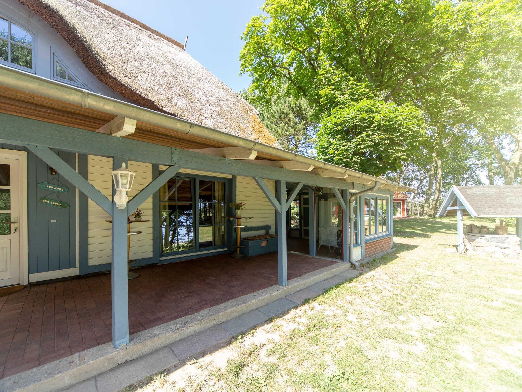 Das Grundstück ist 2300m² groß, ist etwa 200m vom Wasser (Bodden) entfernt und bietet für Kinder viel Platz zum Spielen während sich die Eltern auf der Terrasse oder im Garten erholen können. Neben einer Grillmöglichkeit steht den Gästen auch eine eigene Parkflächen zur Verfügung.