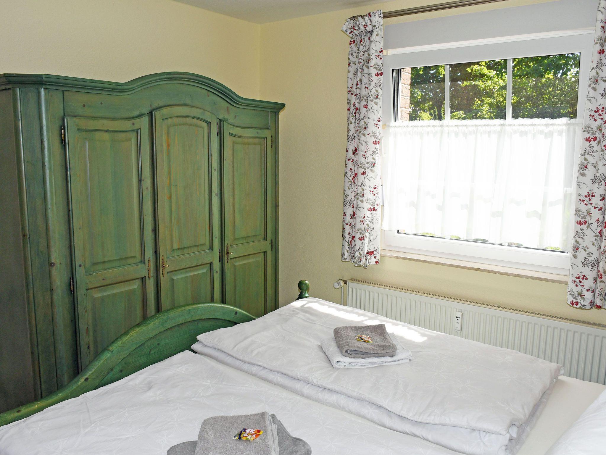 Die Ferienwohnung verfügt über ein großes Wohnzimmer mit Küchenzeile, zwei Schlafzimmer mit Insektenschutz sowie ein Badezimmer mit Dusche/WC und eine schöne Sonnenterrasse mit Strandkorb, die zum Frühstück im Sonnenschein oder zum Grillen oder einfach zum Entspannen einlädt. Ein kostenfreier WLAN-Anschluss steht Ihnen zur Verfügung! Weitere Angaben finden Sie bei der Detailbeschreibung der Wohnung. Gegen Aufpreis sind bei Ihrer Anreise die Betten bereits mit Bettwäsche bezogen und frische Handtücher liegen bereit. Bitte dann ggf. mitbuchen.