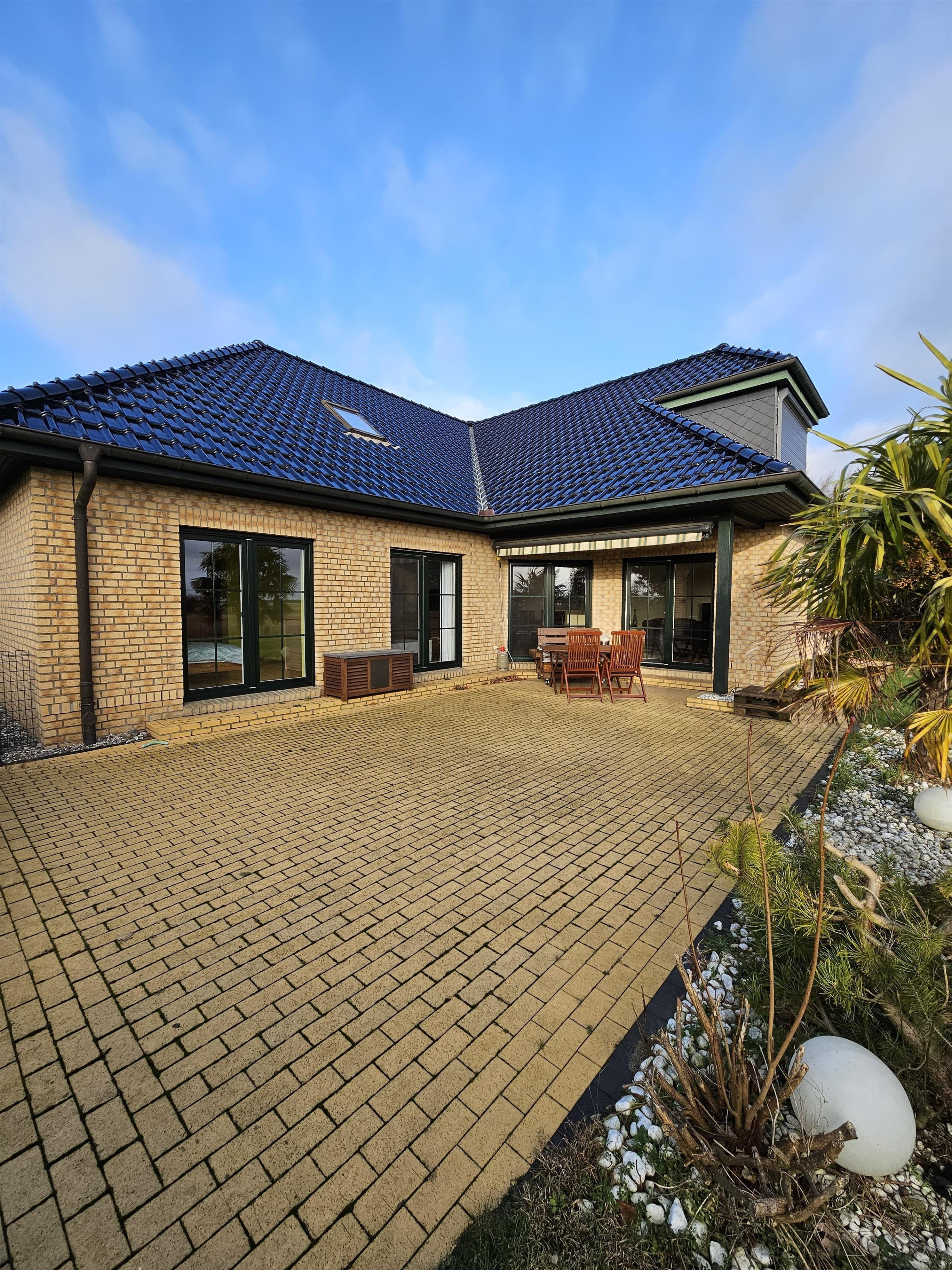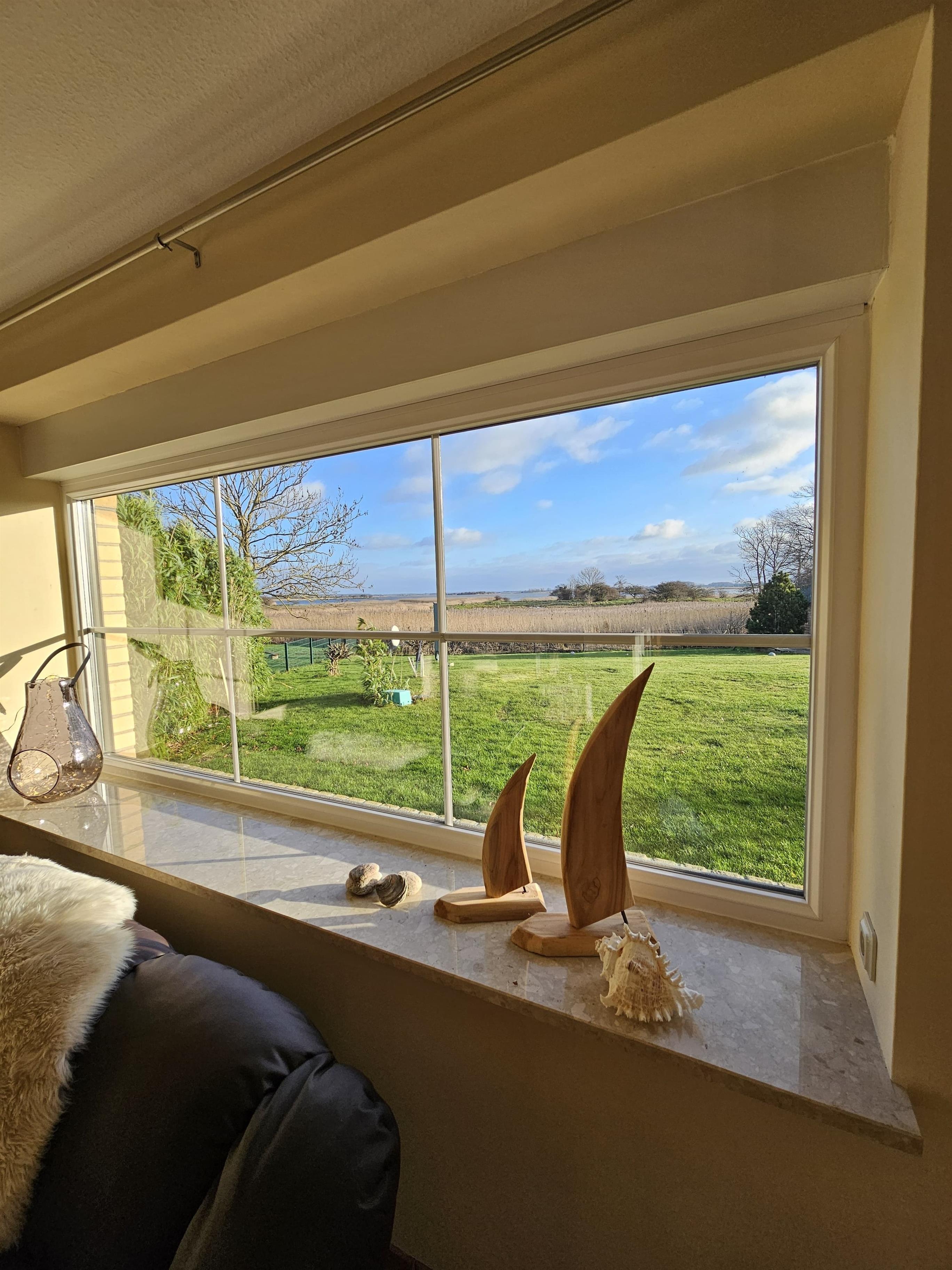 Komplett ausgestattet auf 140m² im Erdgeschoss für bis zu 6 Personen, 1100 m² großes eingezäuntes Grundstück, in unmittelbarer Nähe zum Boddengewässer und freien Seeblick.
