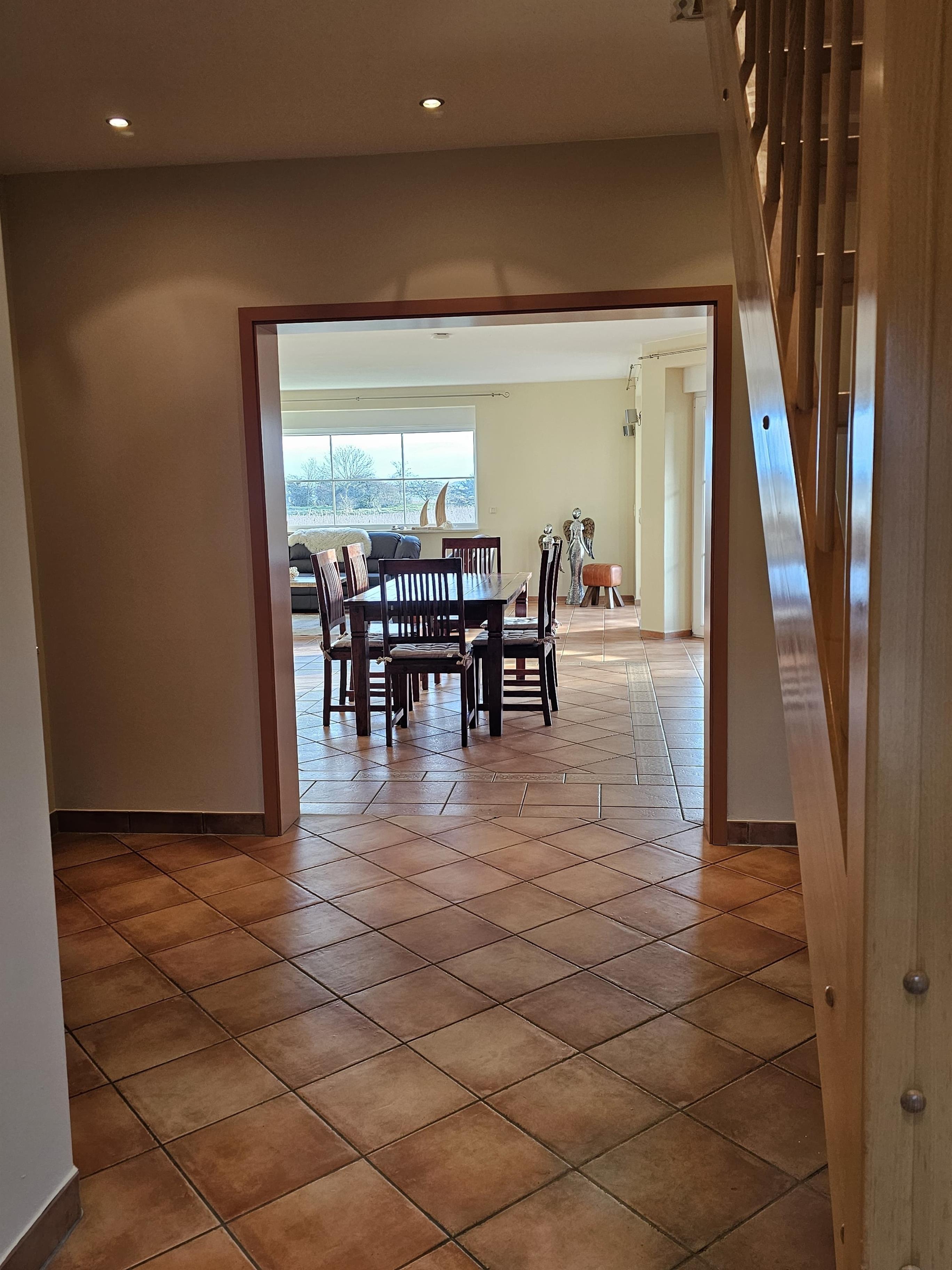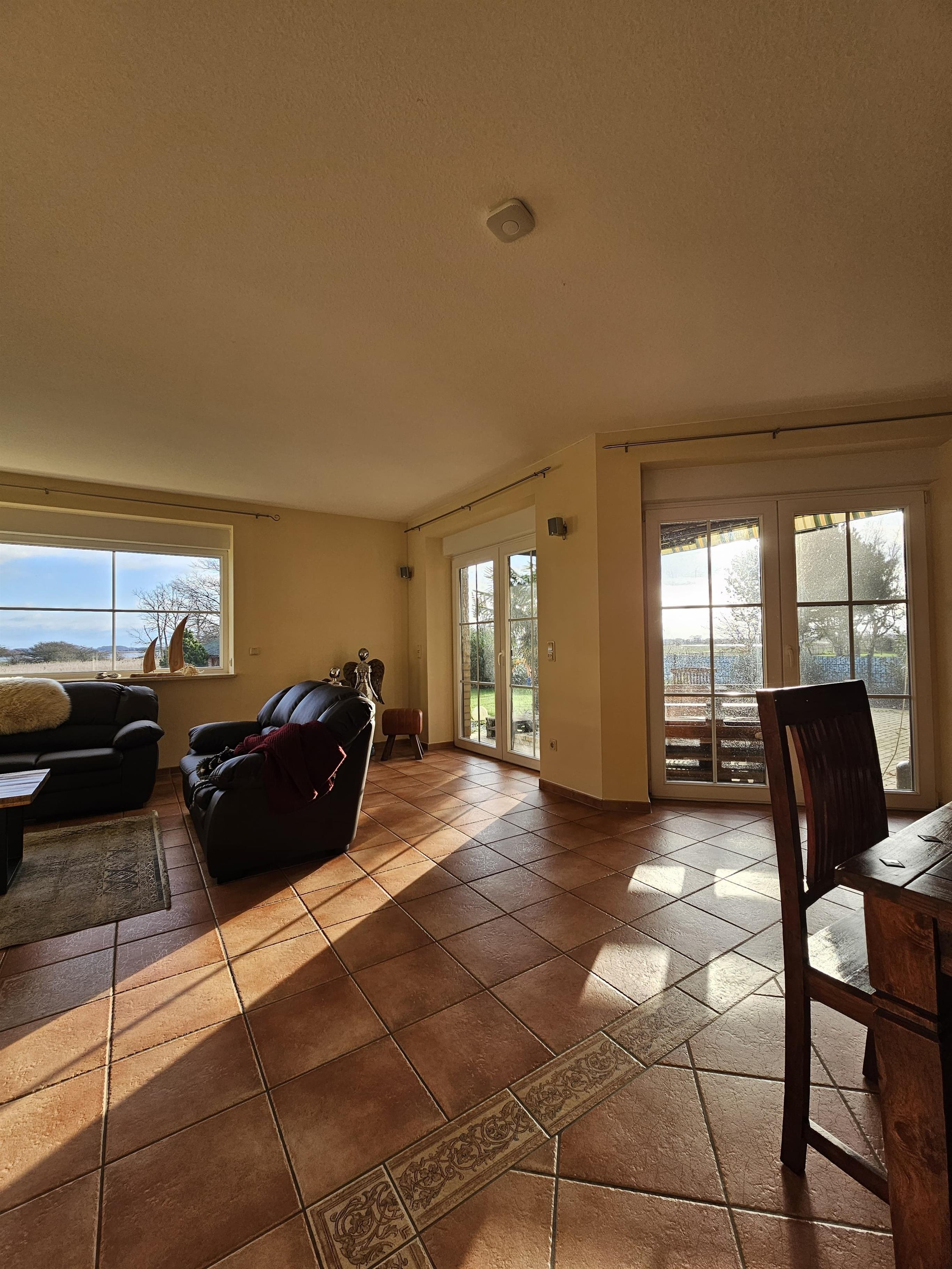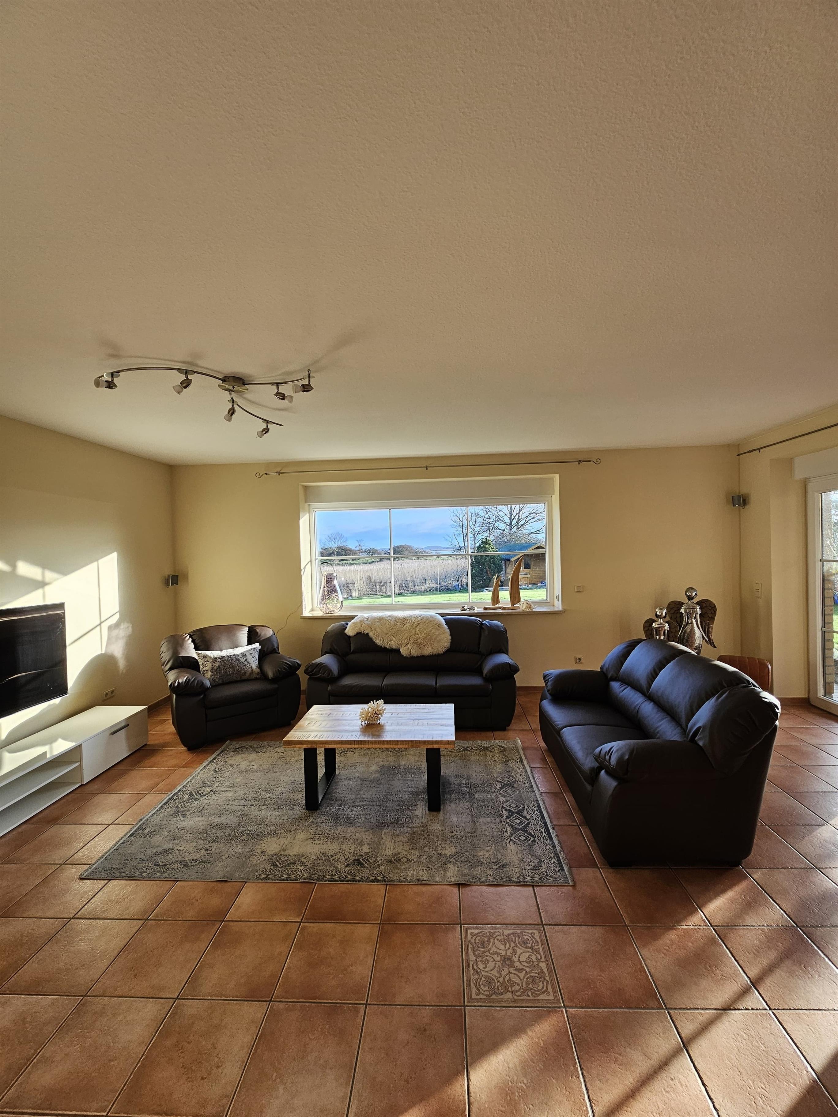 - Komfortables Wohn/Esszimmer mit gemütlicher Couchecke, Kaminofen, großen Esstisch