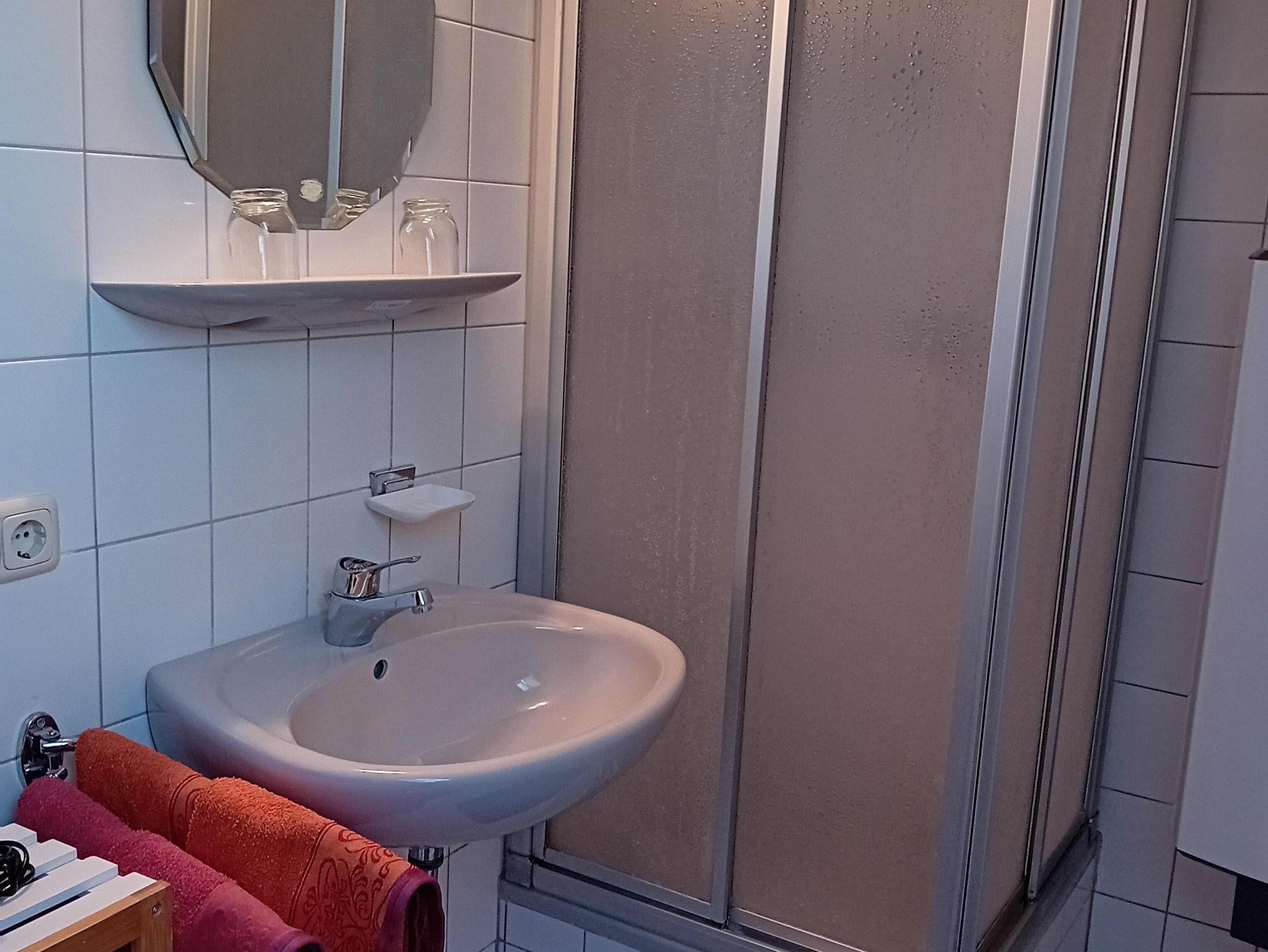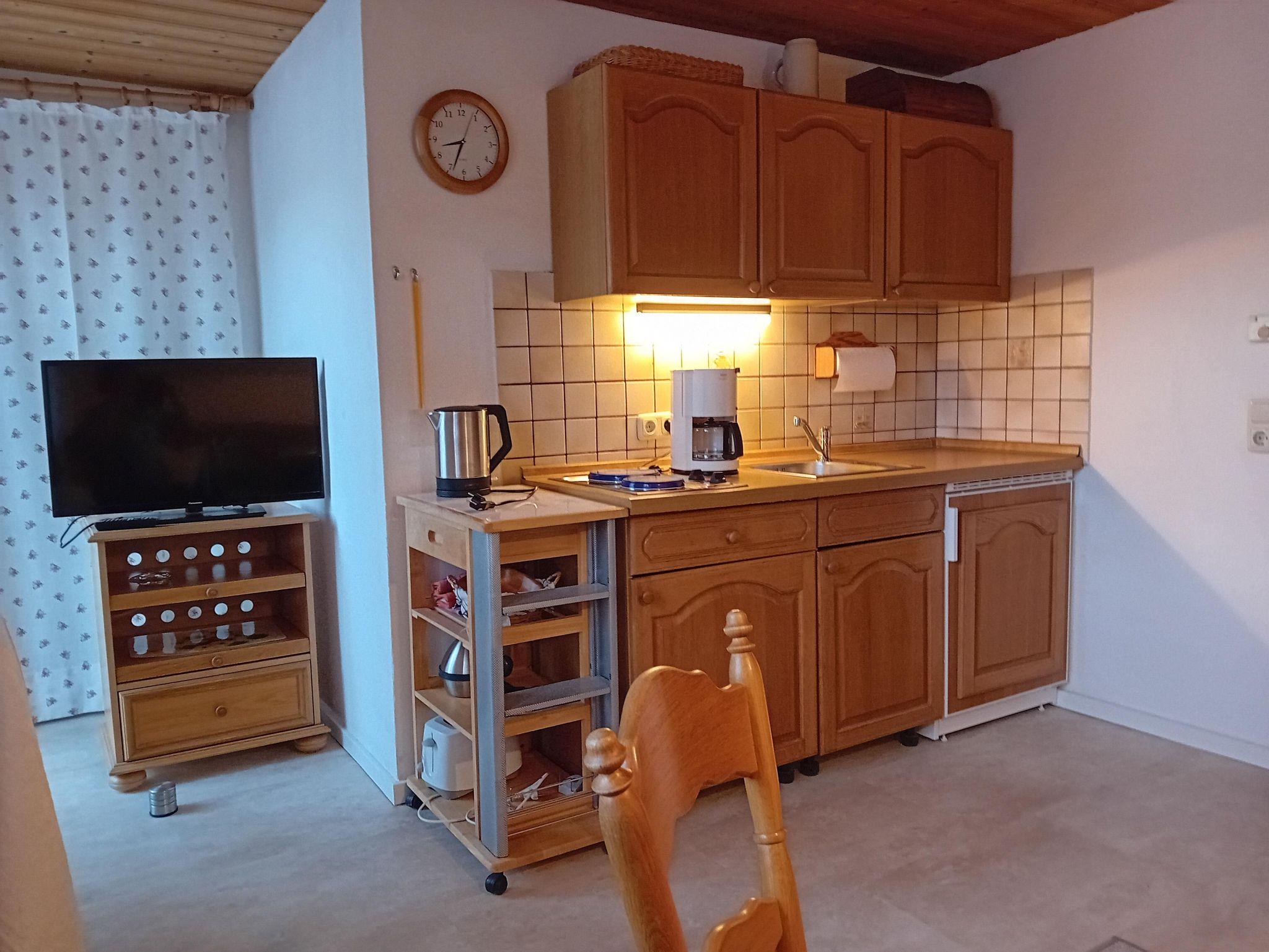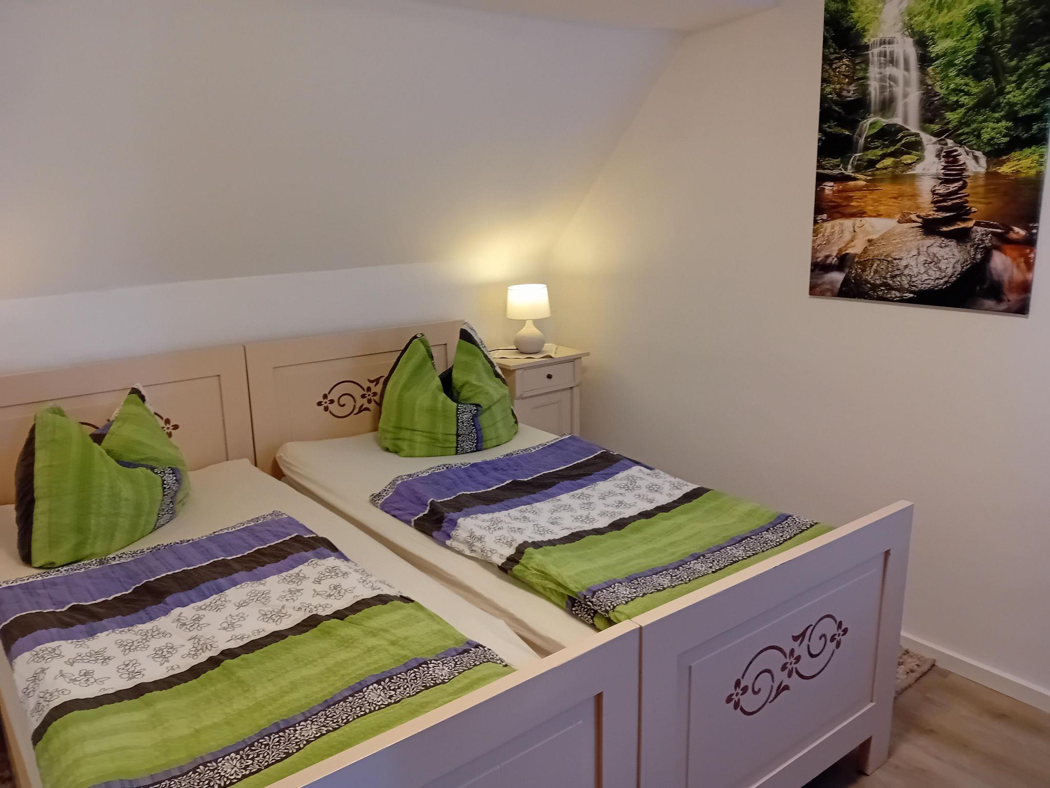 Gemütliche Ferienwohnung mit zwei Schlafzimmern sowie einer Wohnküche und einem großen Bad mit Dusche und WC.