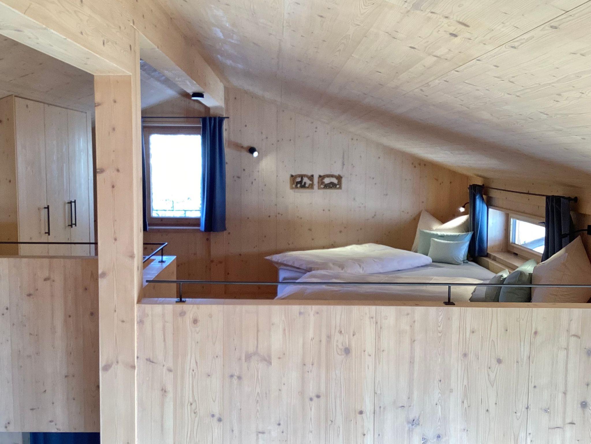 Lohei - Chalets im Chiemgau, Chalet Hollerhäusl, ganzes Haus, 50 qm für 2-4 Personen, Wohnbereich mit Kochecke und Galerie