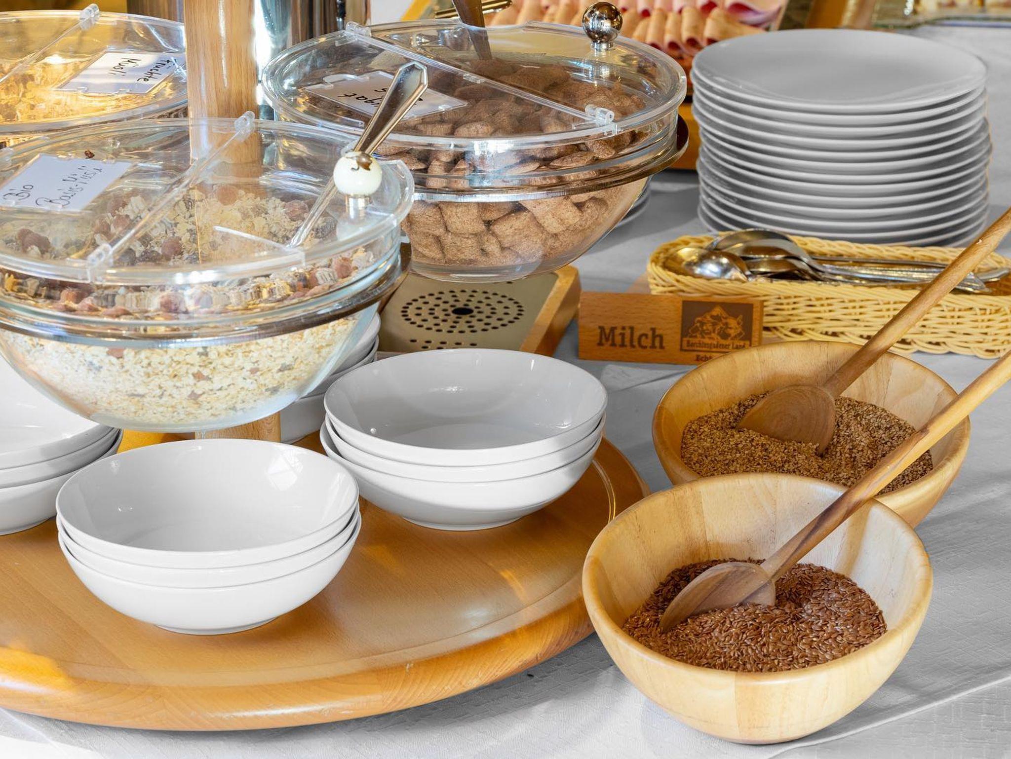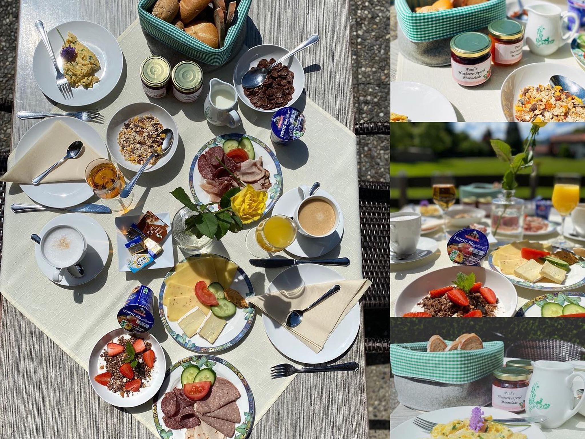 Wir bieten dafür unseren Frühstückskorb „Chiemgau“ an, den Sie sich neben einem Basisfrühstück (Butter, 2 Semmeln pro Person, Marmelade, Honig von lokalen Imkern, Nutella, 1 Heißgetränk, 1 Glas Orangensaft 0,25l) individuell selbst mit verschiedenen Getränken und Essen zusammenstellen und erweitern können.