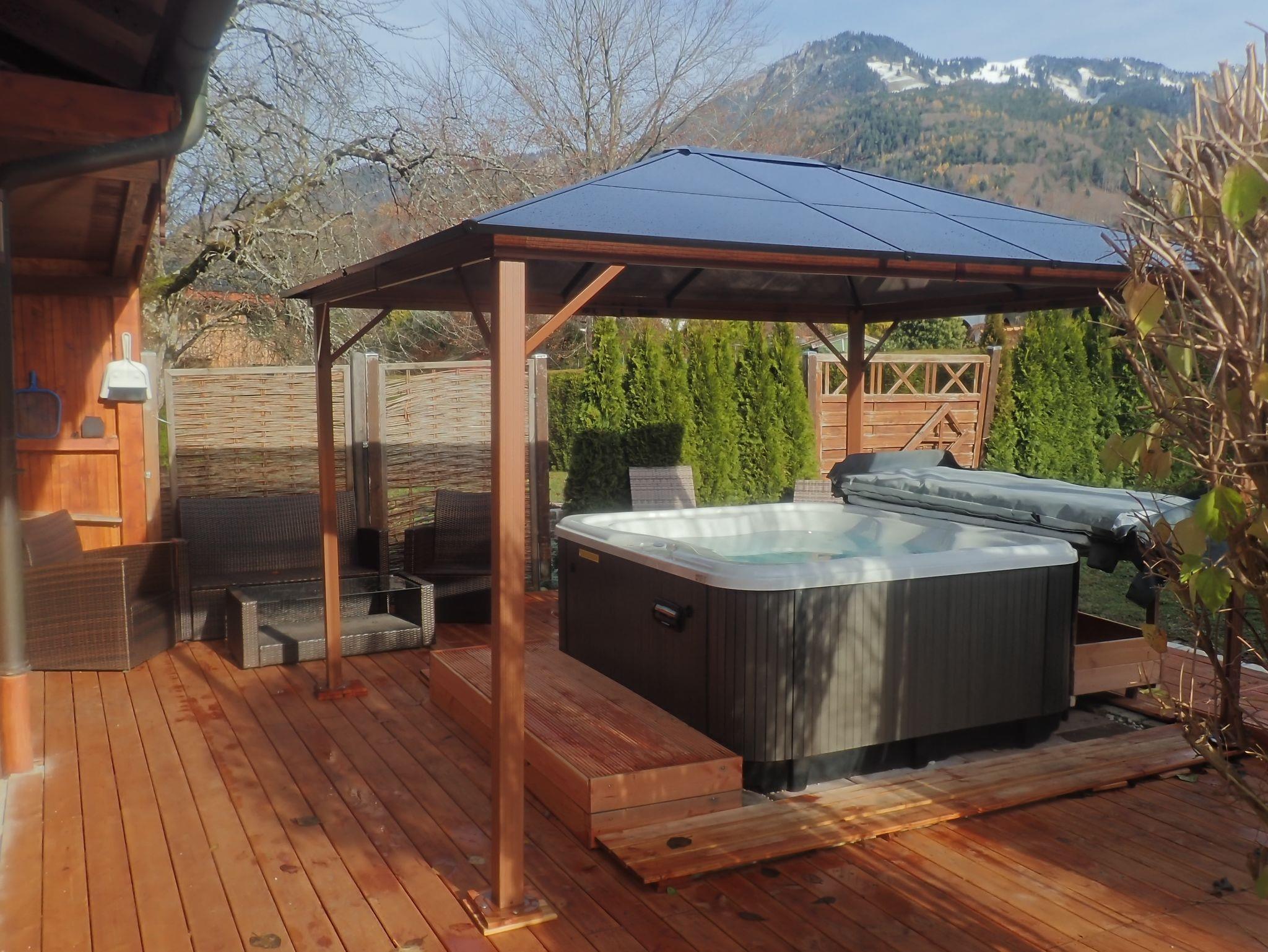 Eine maßgefertigte Schwedensauna mit zusätzlich zwei Infrarotstrahlern und verschiedenen Saunaaufgüssen steht exclusiv für Sie zur Verfügung. Außerdem lädt ein privater Jacuzzi Whirlpool (der Whirlpool hat in den Monaten September-Mai eine fest eingestellte Temperatur von 36 Grad. In den Monaten Juni bis August nach Wunsch des Gastes) auf der Gartenterasse zum Entspannen oder Regenerieren nach sportlicher Betätigung ein.