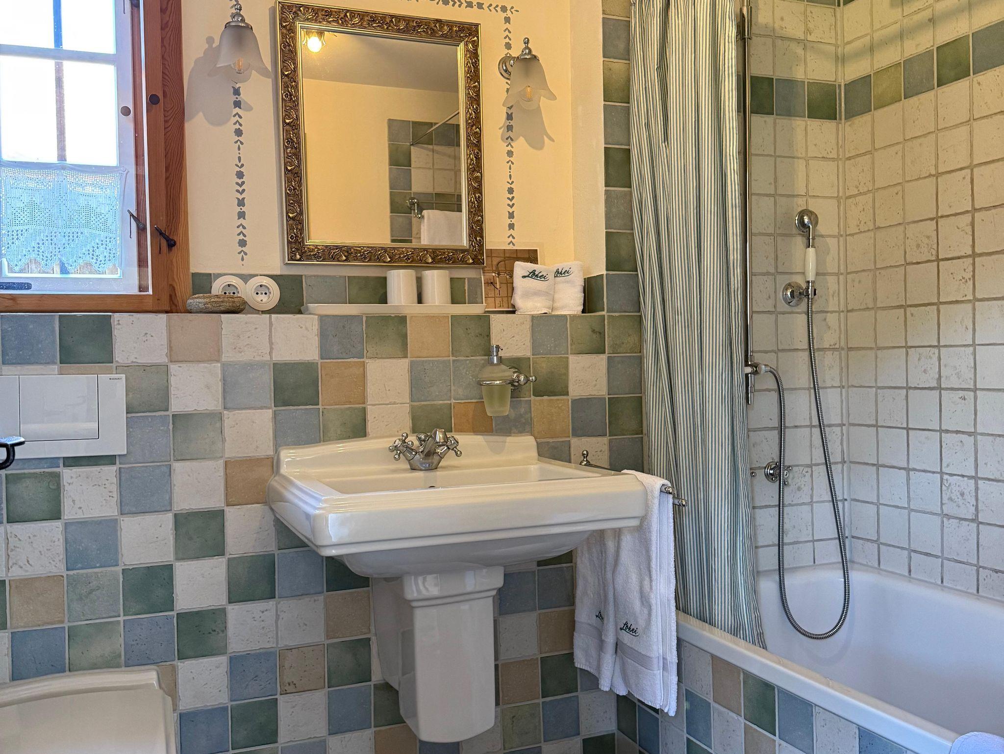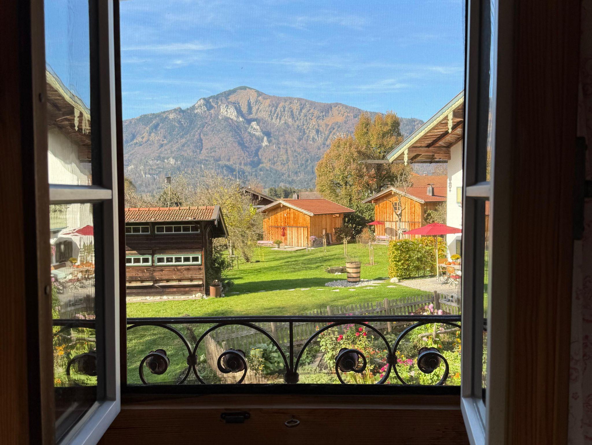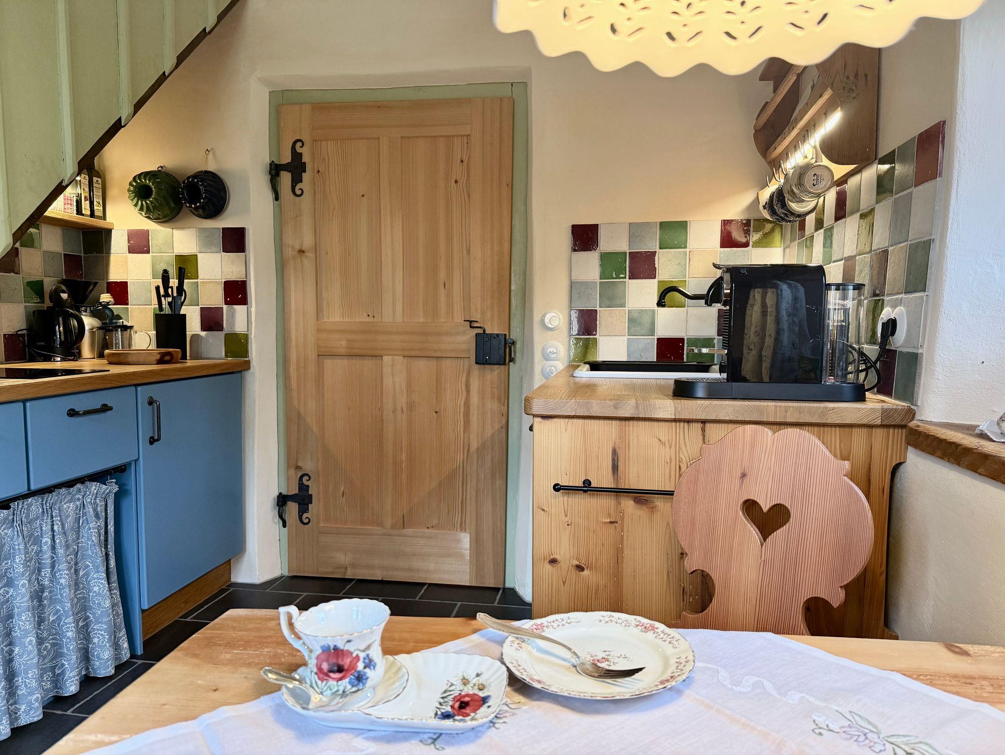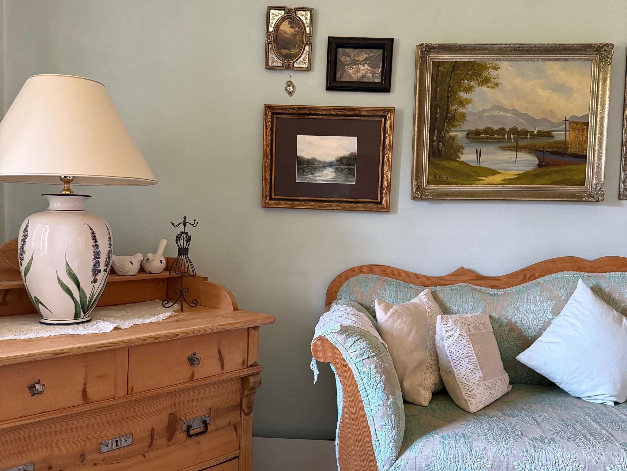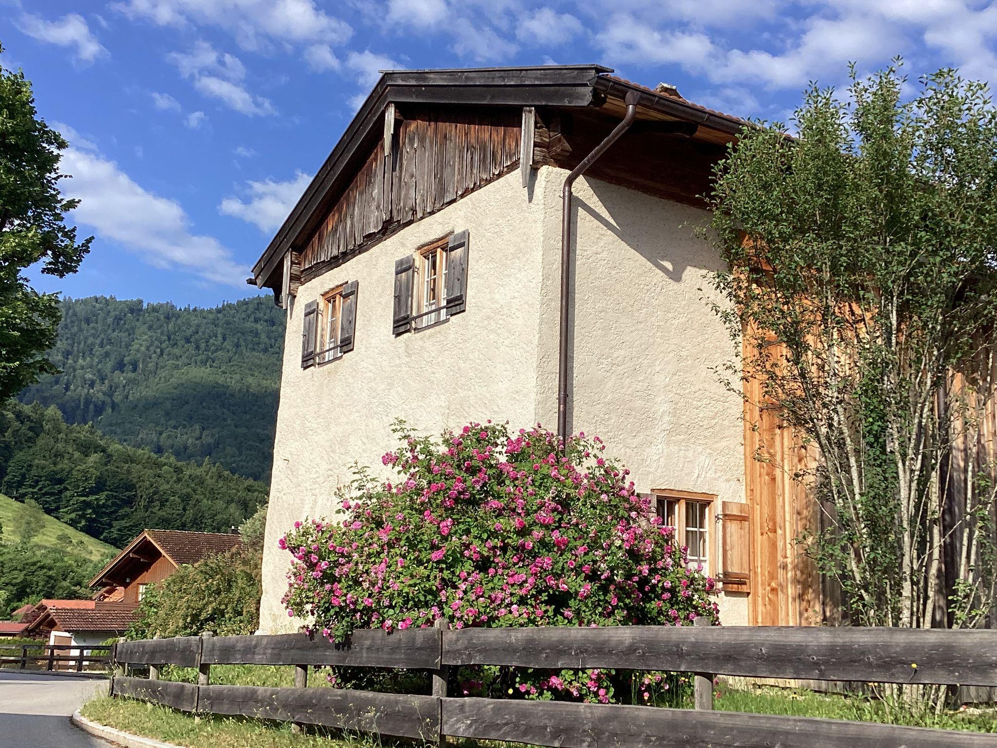 Für Gäste, die das Besondere zu schätzen verstehen: ein denkmalgeschütztes Zuhäusl auf einem uralten Bauernanwesen mit Blick über den Bauerngarten und die weitläufige Streuobstwiese auf die umliegenden Berge. Historische Bausubstanz, die kürzlich aufwändig restauriert und mit allem modernen Komfort versehen wurde, bildet den Rahmen für stilvoll und dabei funktionsorientiert eingerichtete Räume: im Erdgeschoß ein kleiner Eingangsflur und die Wohnküche, dazu ein neu angebautes Bad mit Wanne; über eine steile historische Kastentreppe gelangt man ins Obergeschoß mit Wohnraum sowie einem Schlafzimmer mit Doppelbett 180x200 cm. Handgemachte Fliesen, hochwertige Textilien, schreinergefertigte Einbaumöbel, bäuerliche Antiquitäten, Daunenbetten, Battistwäsche, edles weißes Frottee ergänzen das Ensemble. Fußbodenheizung, freies WLAN, Bose-Lautsprecher. Dazu alle Serviceangebote unserer Lohei-Anlage vom absperrbaren Fahrradraum, dem Hofladen, dem Waschmaschinenraum und dem Carport bis zum Grillplatz.