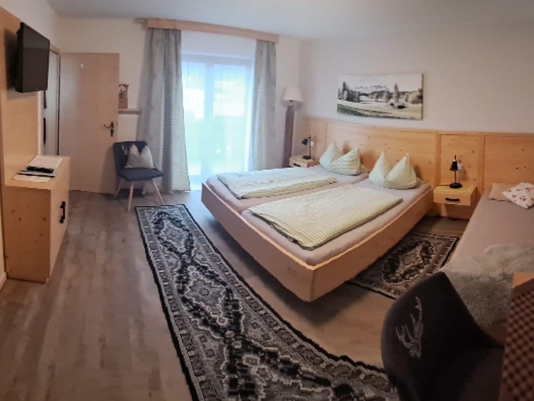 Unser schönes und gemütliches Doppelzimmer ist im Landhausstil eingerichtet. Ausstattungsmerkmale: Doppelbett mit verstellbaren Lattenrost, Sitzgruppe, möblierter Balkon, Dusche/WC, Flachbild TV, WLAN, Radio. Ein Schlafsofa 90x 200cm wird als zusätzliches Bett angeboten. Vom Balkon aus haben Sie einen herrlichen Blick auf die Hochplatte und den Geiglstein. Vom Parkplatz Hochplattenbahn im Nachbarort Marquartstein können sie die Almenwelt rund um den Staffen bis hinauf zur Hochplatte erwandern, oder sie genießen einfach die Bahnfahrt mit der Sesselbahn. Die Ausblicke sind einzigartig. Unsere Liegewiese und Terrassen stehen allen Gästen zur Verfügung. Reichhaltiges Frühstück in unserem gemütlichen Frühstücksraum.