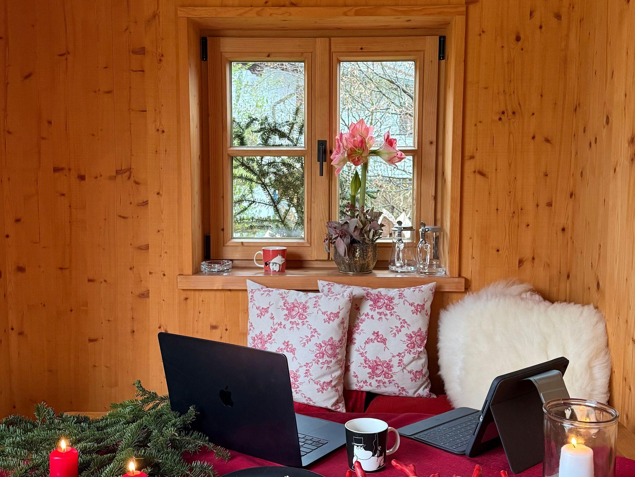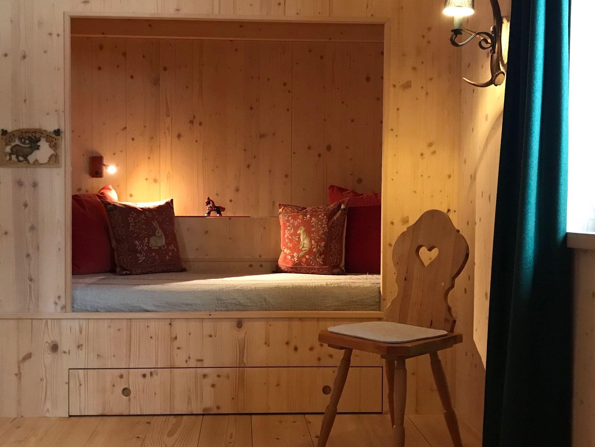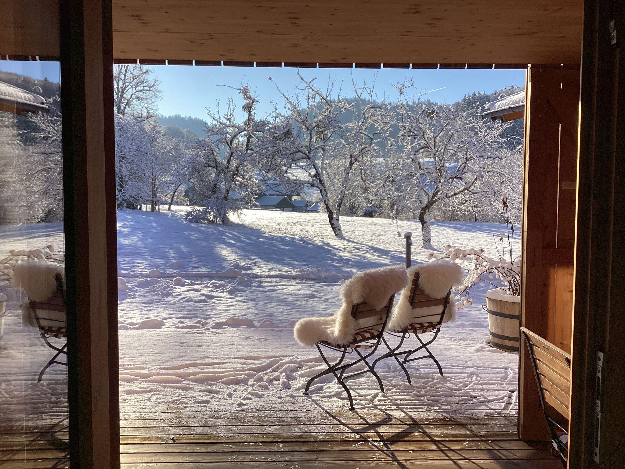 Die besondere Haptik, Akustik und Atmosphäre dieses Massivholz-Chalets wird Ihnen zusammen mit dem freien Blick über die weite Streuobstwiese und dem Spirit des Ensembles „Lohei“ unvergleichlich erholsame Ferientage bieten.