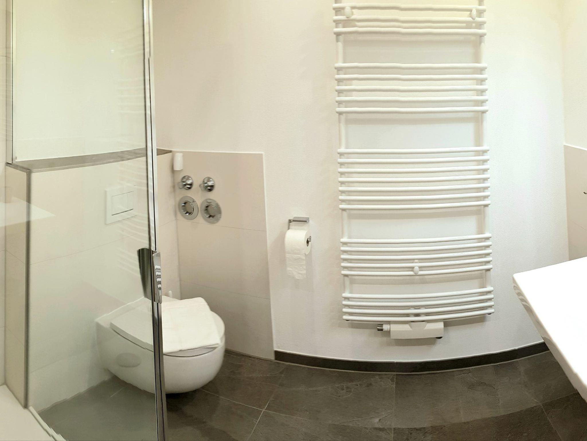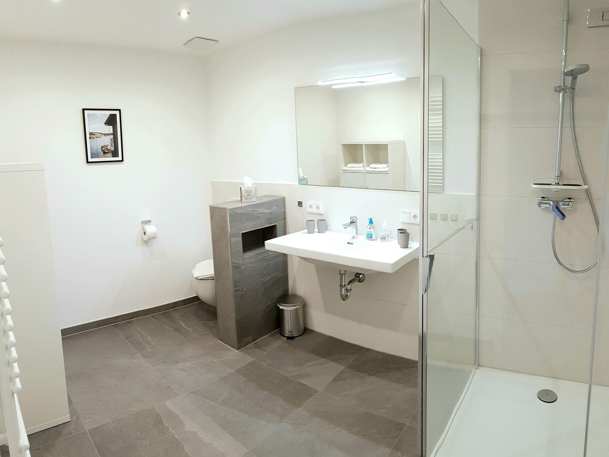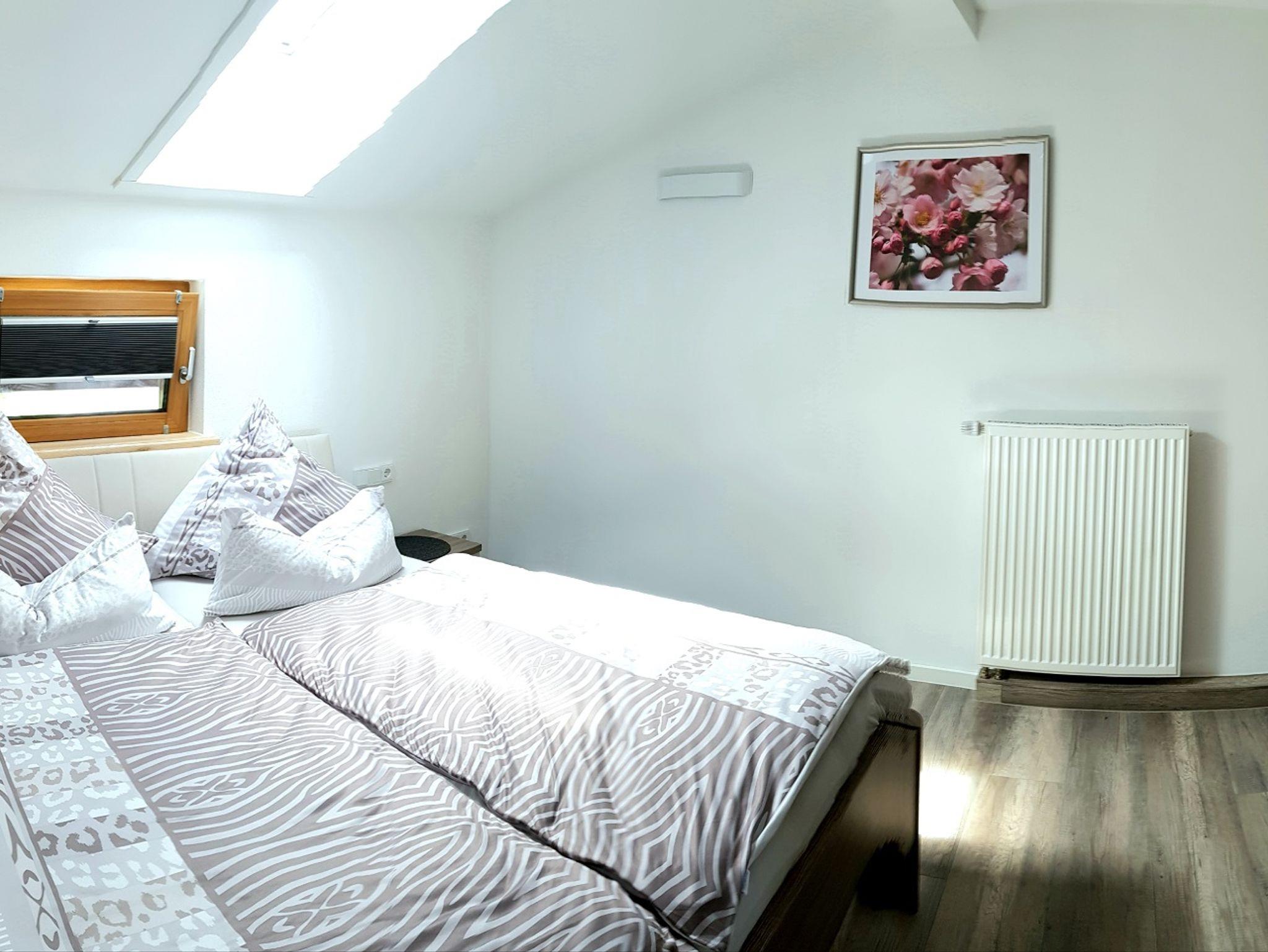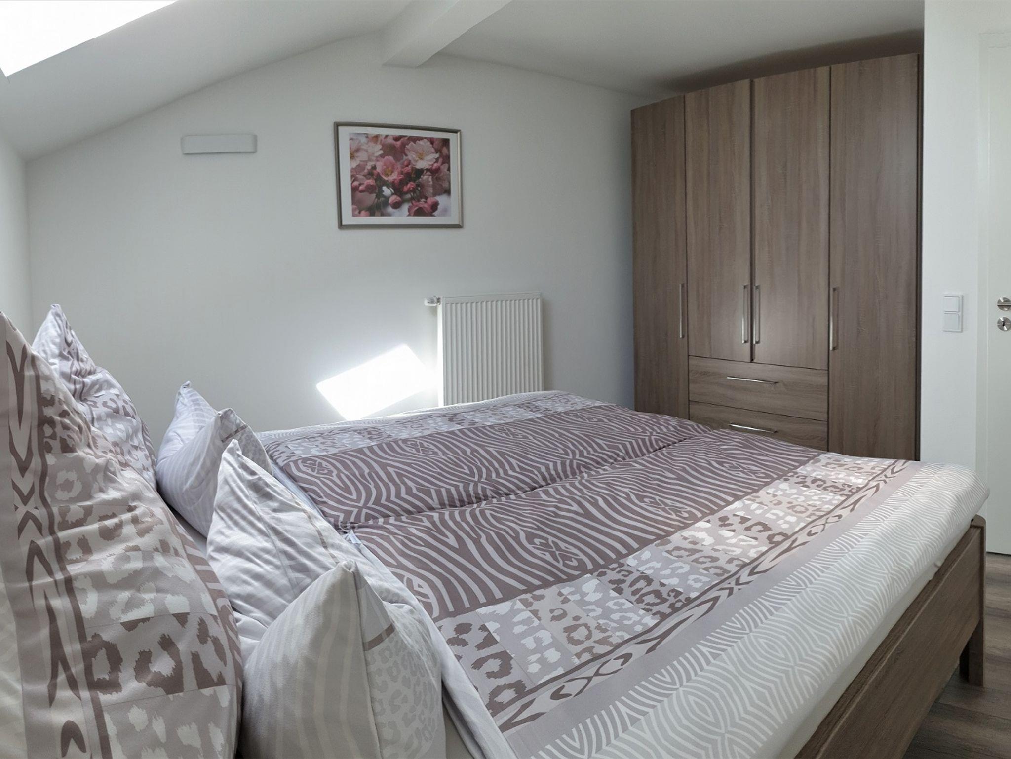 Die Ferienwohnung ist für 2 - 6 Personen mit 2 Schlafzimmer, 2 Bäder, 2 Sofas und mit zusätzlicher Schlafoption. Waschmaschine & Trockner in einem separatem Raum (auf Anfrage nutzbar), einen zusätzlich Flur-Eingangsbereich, mit Wäscheständer und Garderobe. Großzügiger Wohnraum mit Kochnische, gemütlicher und funktioneller Ausstattung. Im Küchenbereich ist ein großer Kühlschrank mit Eisfach integriert. Geschirrspüler, Backofen, Ceran-Kochfeld, Wasserkocher, Kaffeemaschine (mit integrierter Thermos-Kanne) und Toaster sind für Sie vorhanden. ZWEI Bäder in moderner Optik mit Fußbodenheizung und Handtuch-Heizkörper. Für die Hygiene stehen Desinfektions-Gel und eine antibakterielle Waschcreme zur Verfügung. Die Schlafzimmer haben alle ein Dachfenster mit Verdunklung und ein Außenfenster mit Rollo. Es wurden nagelneue Matratzen von Schlaraffia für Ihre Erholung eingelegt. Bei Bedarf lässt sich die Couch als zusätzliches Bett ausziehen. Ebenso ist im Wohnzimmer eine Schlafcouch integriert. In einem Schlafzimmer ist ein zusätzlicher Flat-TV.