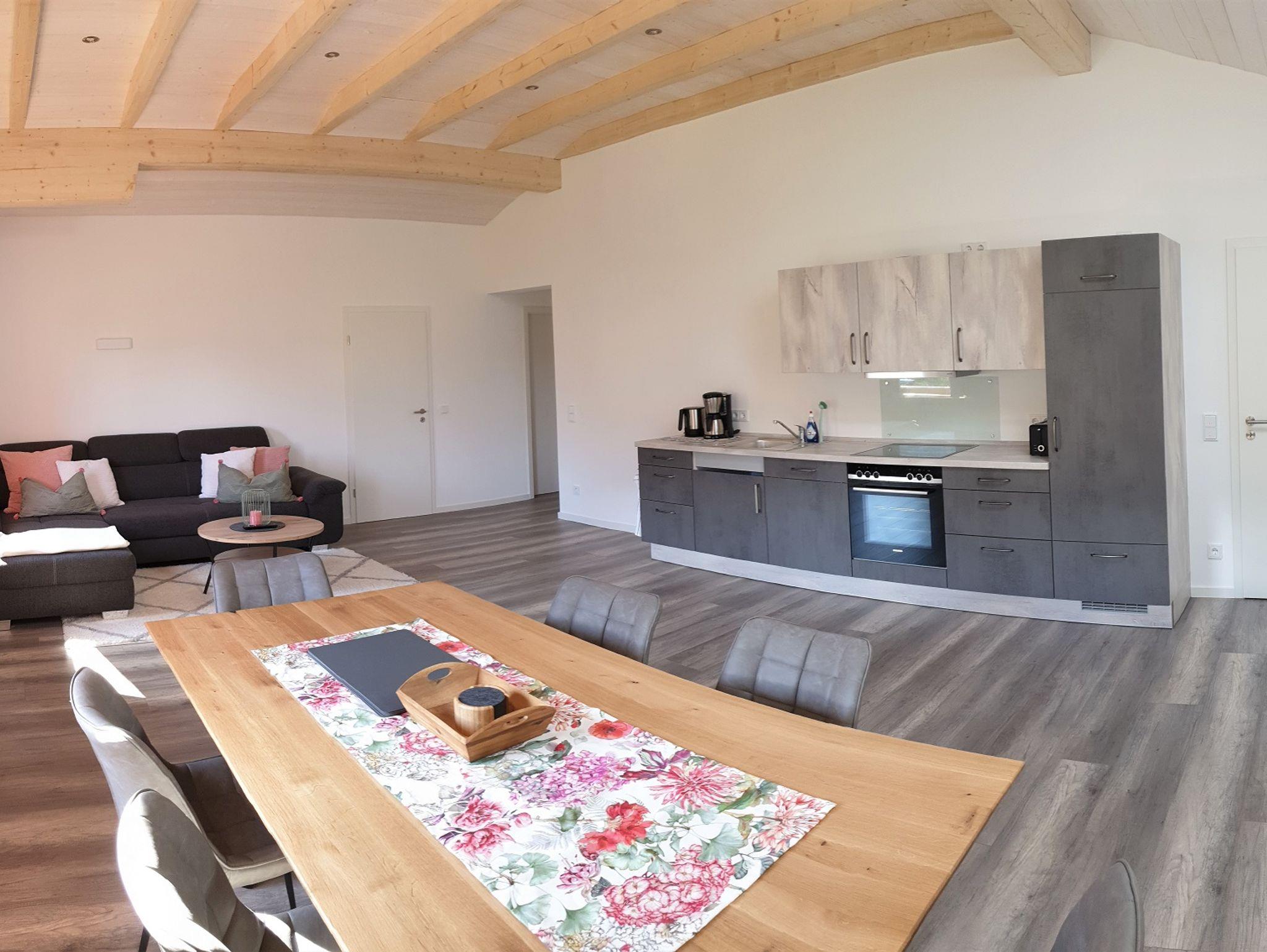 Die Ferienwohnung wurde 2020 komplett neu renoviert. Im Garten steht Ihnen ein großer Freisitz mit Tisch, Bänken, Komfort-Liegesessel und Hauben-Gasgrill zur Verfügung! Sie haben in der Wohnung und auch im Freisitz kostenlosen Zugang zu unserem schnellen WLAN-Anschluss der Telekom (Glasfaser-Leitung). Zusätzlich stehen Ihnen auch noch LAN-Anschlüsse in der Wohnung zur Verfügung. Wir haben sehr auf die Hochwertigkeit (z.B. hygienische Bio-Böden) und Nachhaltigkeit bei der Auswahl der Baumaterialien und Einrichtung geachtet. Sie sollen sich einfach Wohlfühlen und Ihren Urlaub von Anfang an genießen können. Gerne können Sie auch den Freisitz mit Grillmöglichkeit nutzen, der für Sie exklusiv zur Verfügung steht. Er ist bestückt mit einem großen Tisch für 6 - 8 Personen. Ebenso vier Relax-Sessel mit Liegefunktion und zwei Klappstühlen. Für Ihr Grillvergnügen ist ein Gasgrill mit Gussplatten und separater Kochfläche vorhanden. Der Garten ist großzügig und entspannt durch viel Grün.