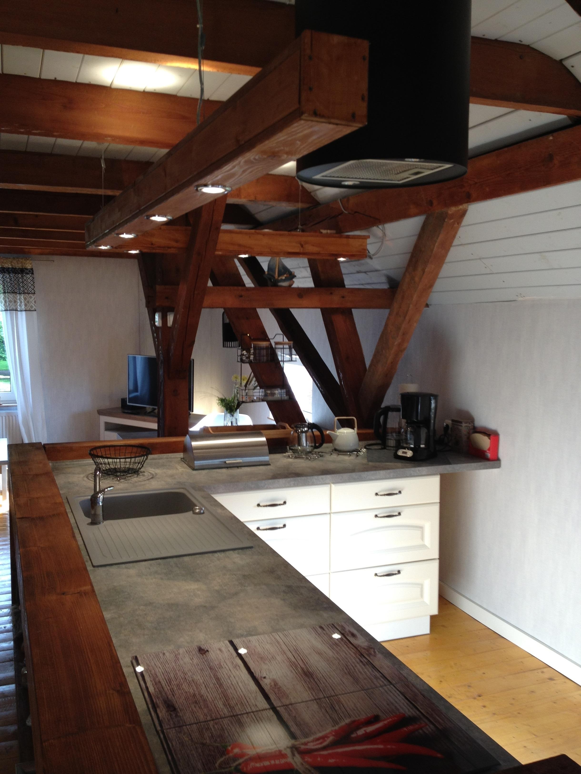 Die Wohnung ist großzügig und lichtdurchflutet gestaltet. Ca. 70 qm in der 1,Etage mit separaten Eingang. Das rustikale Interieur bietet ein offenes kommunikatives Wohnen, Kochen und Genießen. Die Wohnung ist mit einem modernen Bad / WC und Dusche ausgestattet. Ebenfalls können Feriengäste eine großzügige Terrasse mit Strandkorb zum Verweilen nutzen oder aber auch im Garten die Liegewiese mit Grillmöglichkeit nutzen. Zur Wohnung gehört ein eigener PKW-Stellplatz, ebenfalls eine Unterstellmöglichkeit für Fahrräder und einem E-Anschluß.