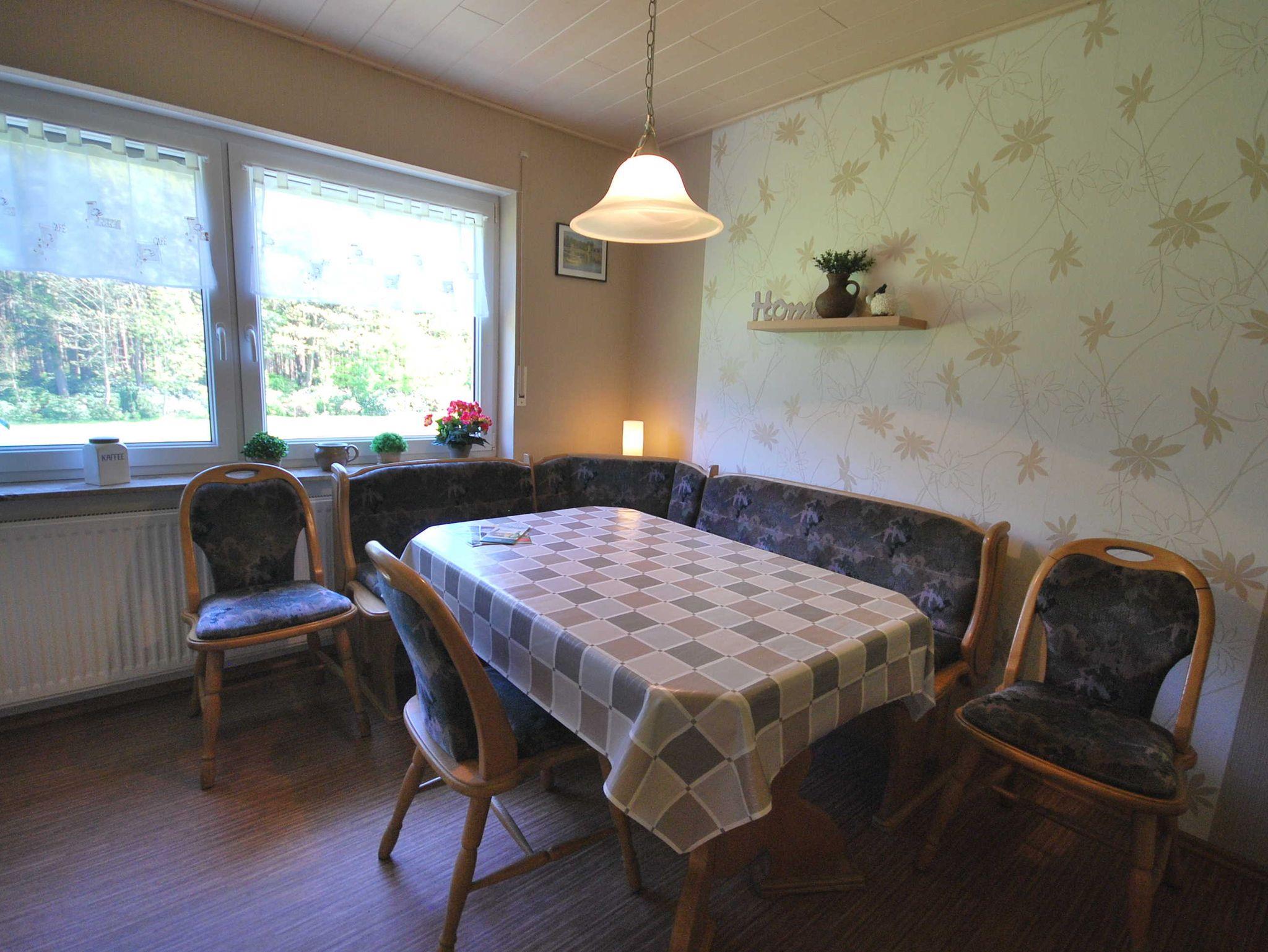 Es erwartet Sie eine wunderschöne, liebevoll eingerichtete Ferienwohnung im Obergeschoss mit vollausgestatteter, geräumiger Küche, einem gemütlich eingerichteten Doppelzimmer mit Waldblick, einem Zweibettzimmer mit schönem Balkon, einem Wohnzimmer sowie einem großem, hellem Badezimmer. Bis zu vier Personen können in unserer Ferienwohnung Platz finden. Zusätzliche Kissen und Decken sind auf Wunsch erhältlich. Bettwäsche und Handtücher sind selbstverständlich inklusive.